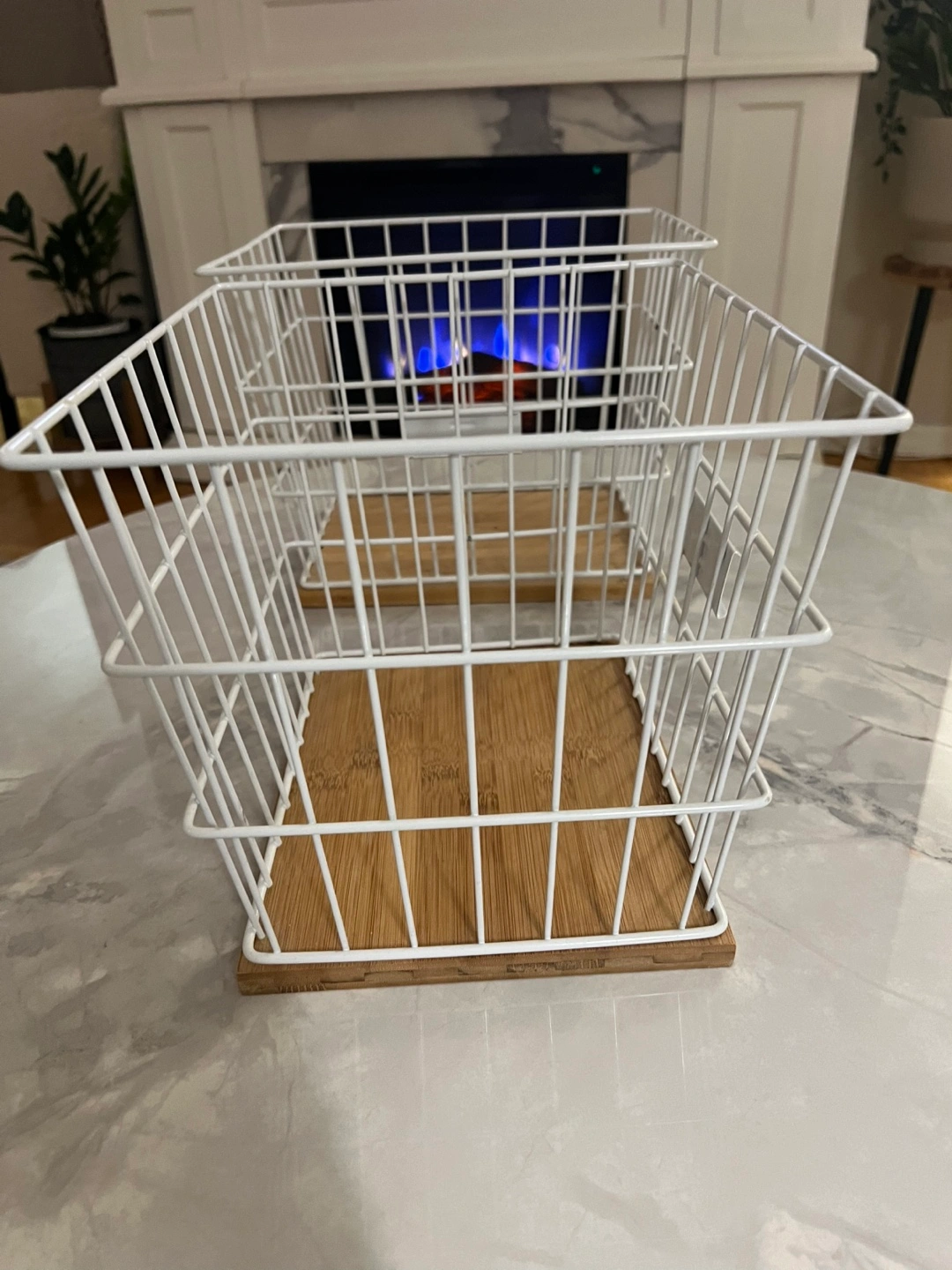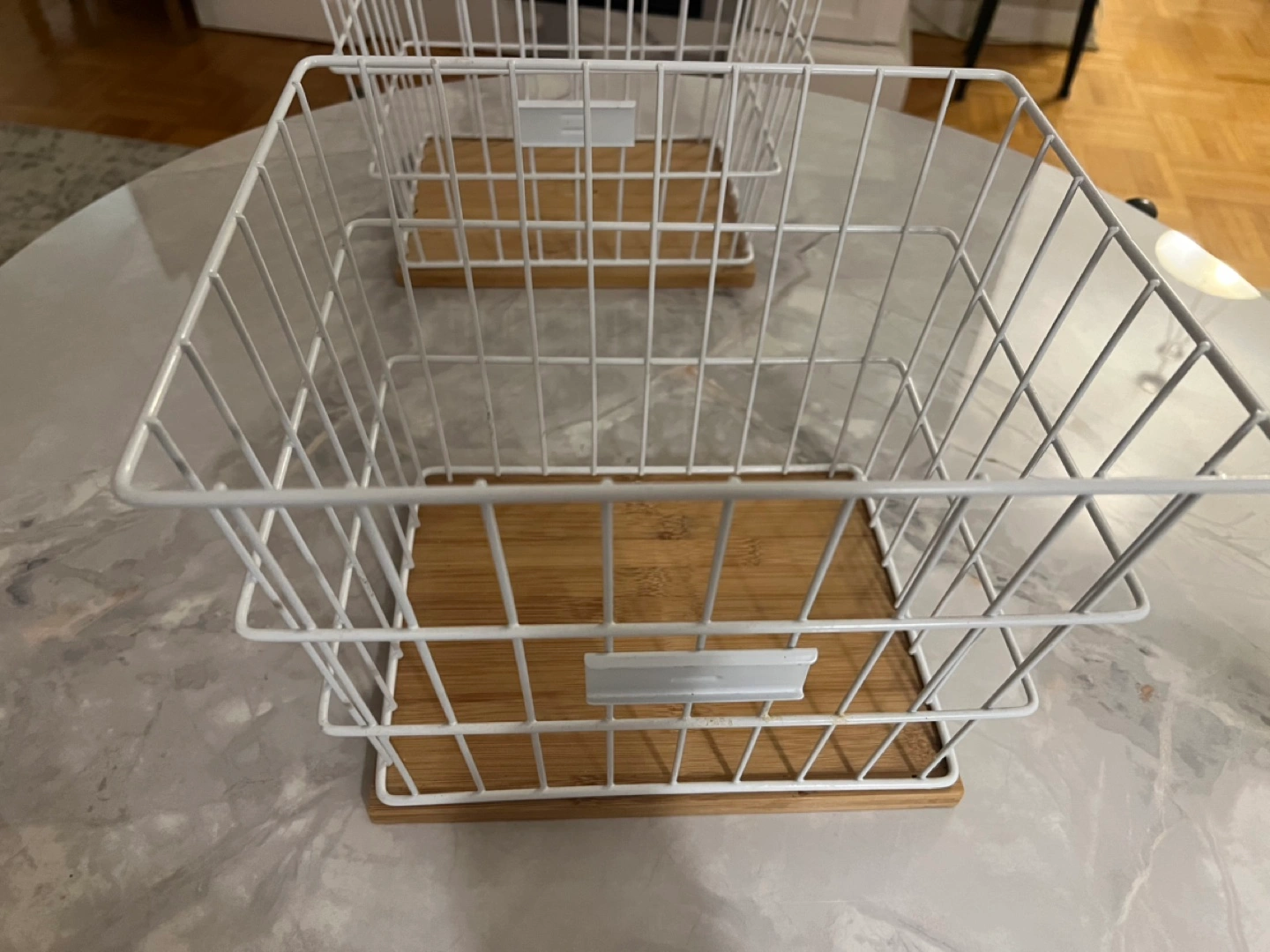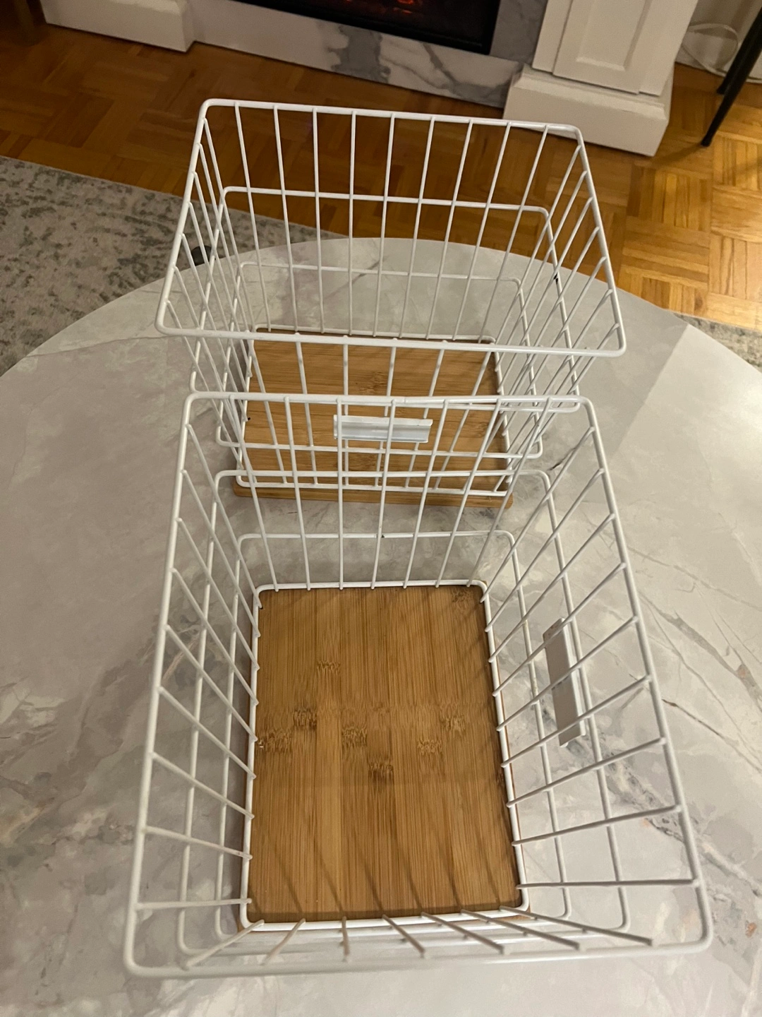 2- Used but still in good condition white wire with base wood used for fruits and vegetables. Kept clean, no visible scratches that I can see and no stains. The price is for both baskets. Pick up at Bayview and Sheppard and cash only.