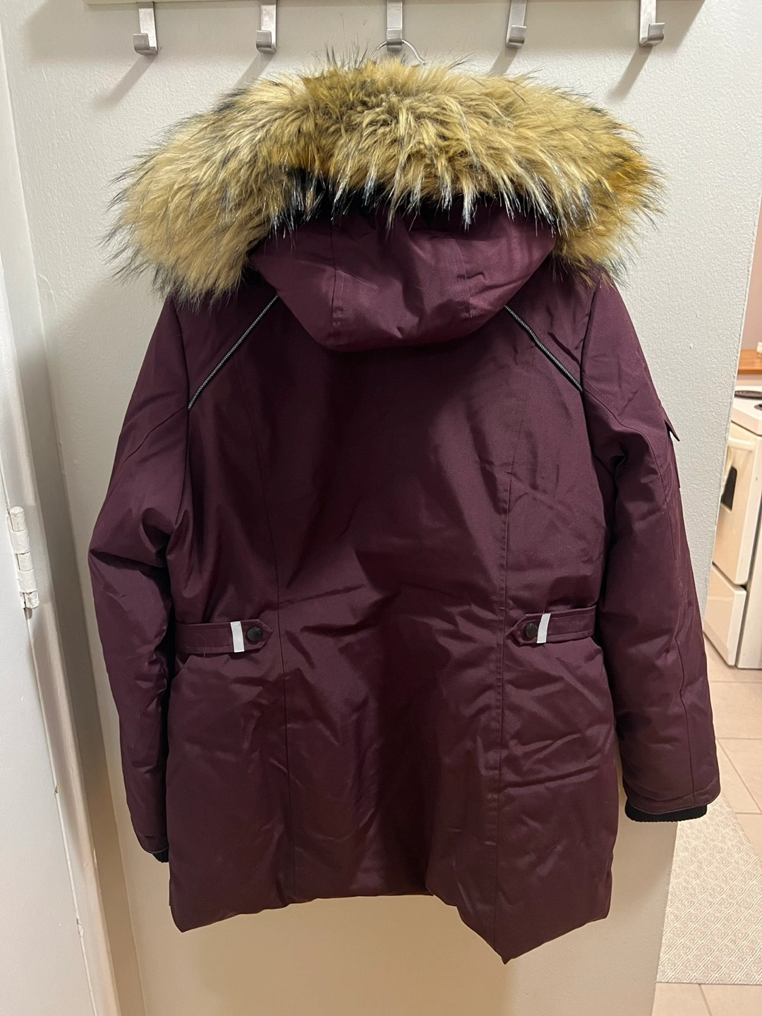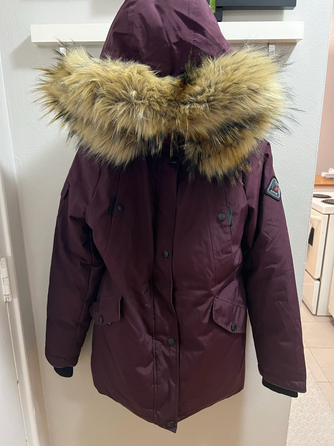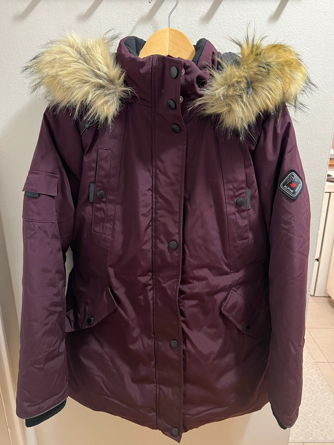 Barely worn women’s winter coat. In great condition. No stains, no marks or rips. Smoke free. Very comfortable and lots of pockets. Hood is detachable. Zippers and snaps all work great! Colour is maroon and medium size. I’m 5’1 in height and it sits just above the thigh. WOMEN'S INSULATED PARKA JACKET - Windproof and water-resistant with an adjustable curvy fit, vegan insulation, below-freezing protection, and a layerable fit, experience true protection against snow, slush, damp cold, and harsh winds. Pickup at Bayview & Sheppard and cash only.