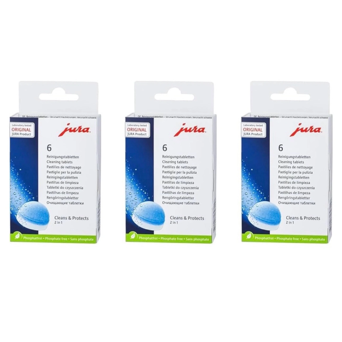 18 count (3 packs of 6) 2-phase cleaning tablets for Jura brand Capresso Espresso Machines. New and unopened.