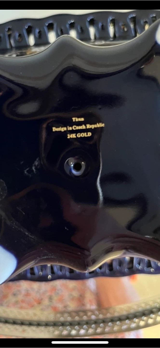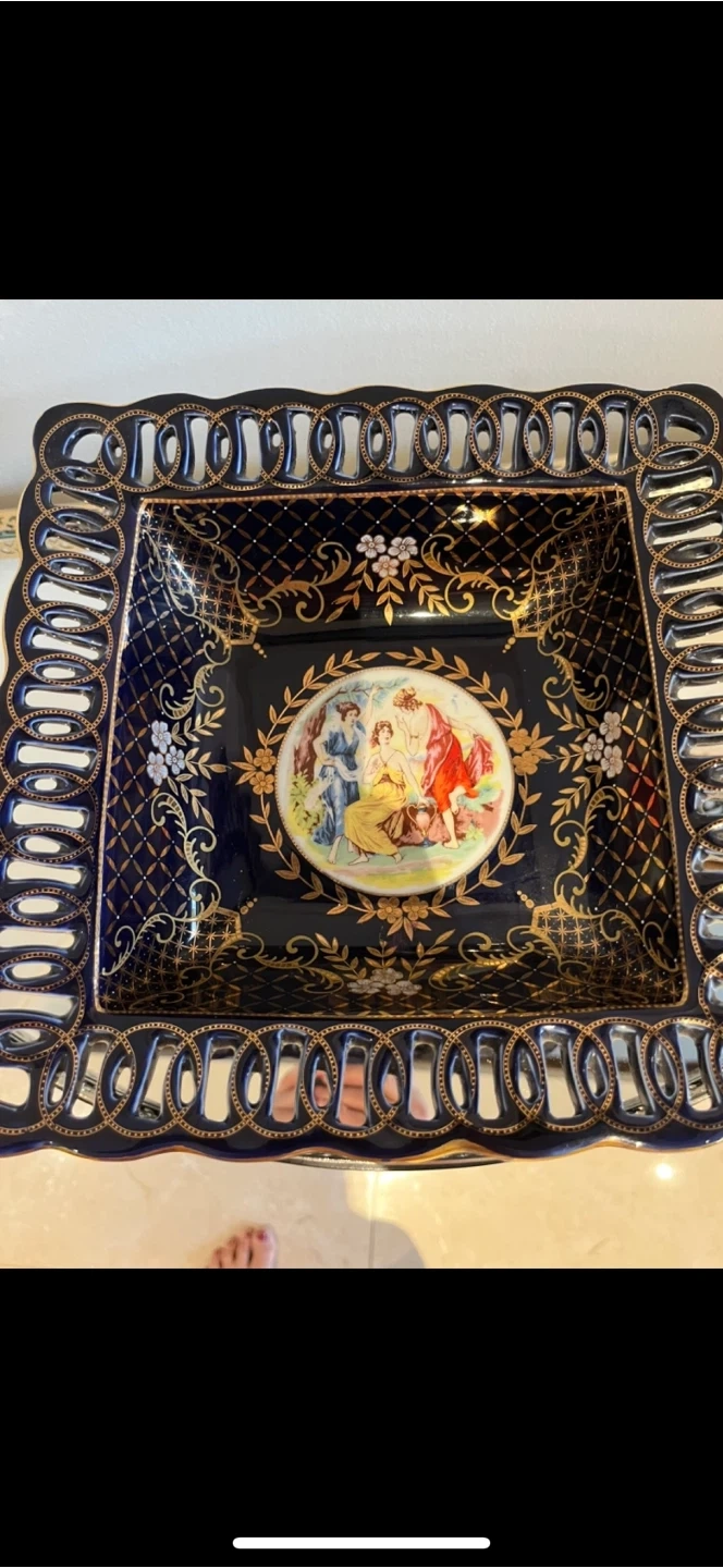 1000+Beautiful cobalt blue and gold decorative bowl. Intricate detailing. Features a classical scene. Square shape with pedestal base. Made in Czech Republic. Cash only Bathurst And Steeles Pick up