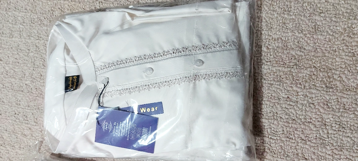 Off-white kurta pajama. Long sleeves. Button closure. Embroidered detail. New with tags. Made in Pakistan.