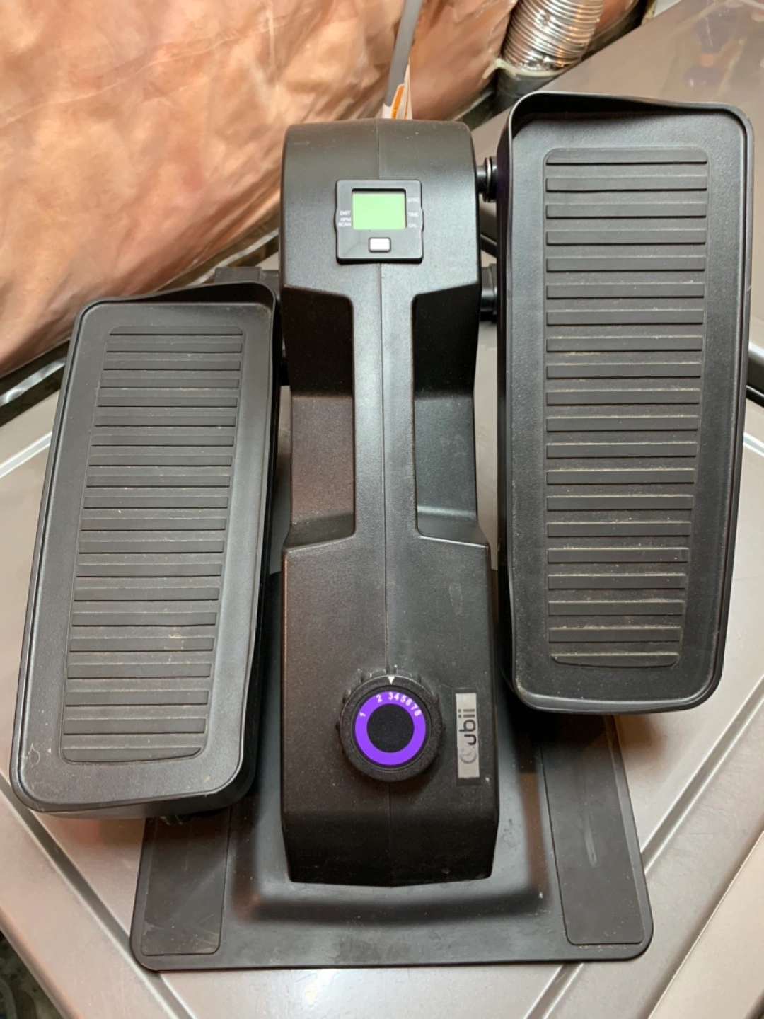 Compact elliptical machine. Great for home use or under an office desk. Adjustable resistance knob. Non-slip foot pedals. Folds for easy storage. Lightly used.