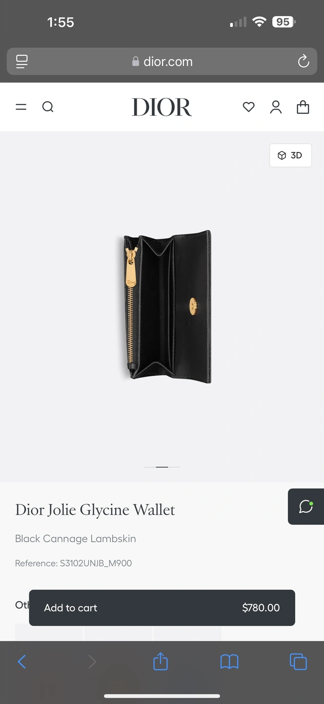 Brand New Dior Black Lambskin Jolie Glycine Wallet