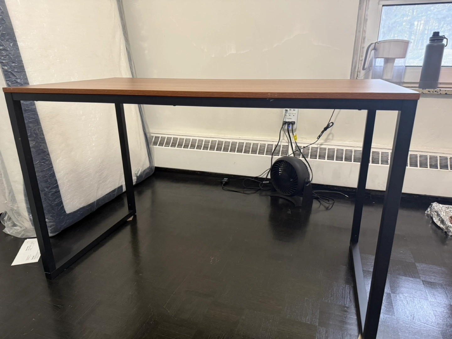 Simple, stylish writing/ computer desk. Brown wood top and black metal legs. Minimalist design, perfect for small spaces. Can be disassembled. Pick up only. Moving out sale.