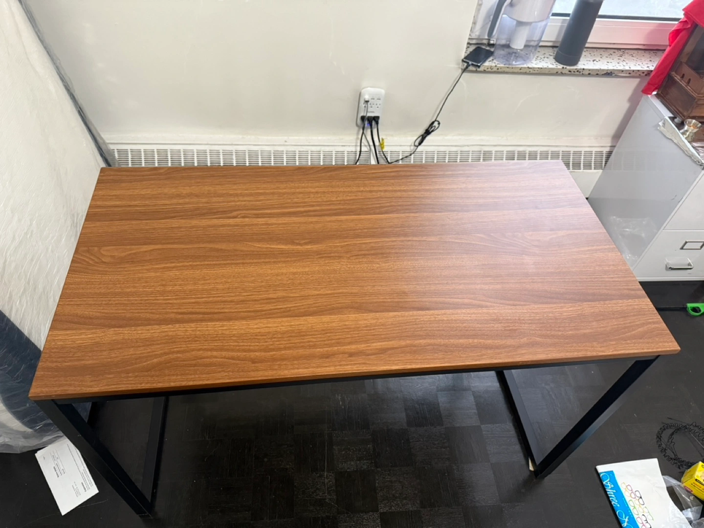 Modern Walnut Desk with Black Metal Frame