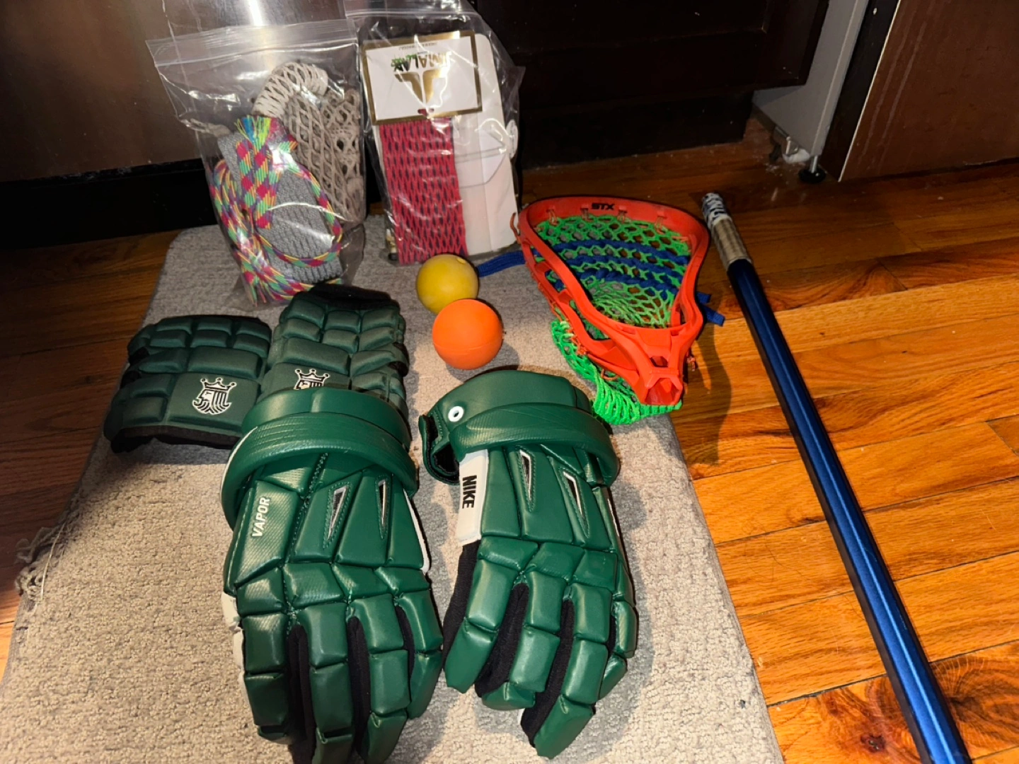 135Green lacrosse gloves, goalie gloves, and lacrosse head included. Extra strings and balls. Great for practice or games. STX Hammer Lacrosse head already strung and used one fall ball season. Nike Vandal stick to go with the head. Perfect for kids wanting to start out.