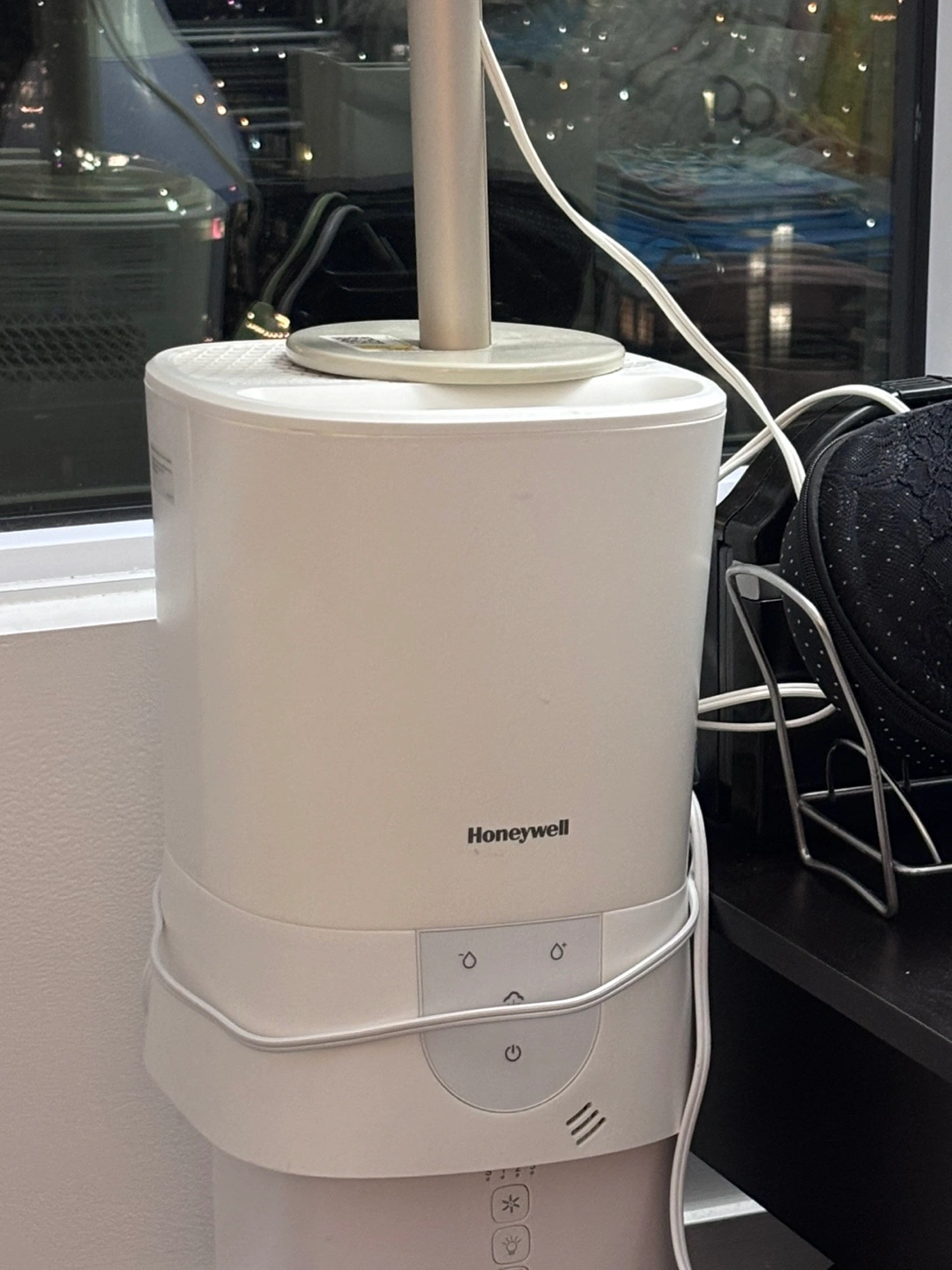 35Tower humidifier. White plastic. Simple controls. Good for small to medium rooms.