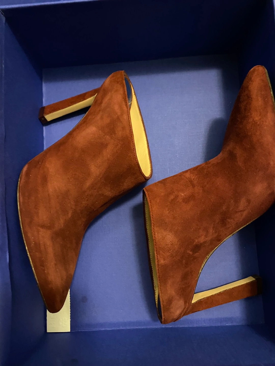 Beautiful burgundy suede mules. Pointed toe and stiletto heel. In original box.