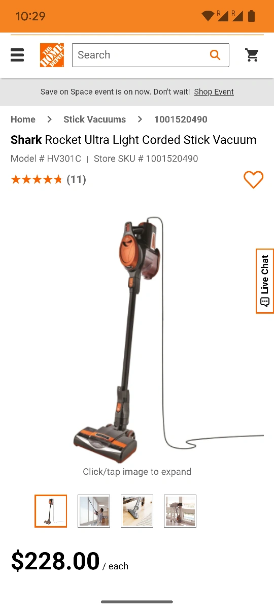 Shark Rocket Ultra Light Corded Stick Vacuum