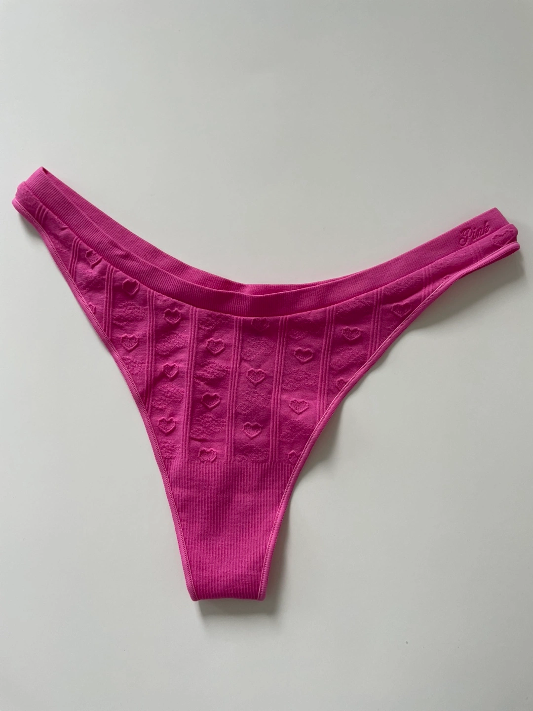 New with tag PINK Victoria's Secret thong. Size XS. Pink colour. Embroidered hearts. Ribbed fabric.