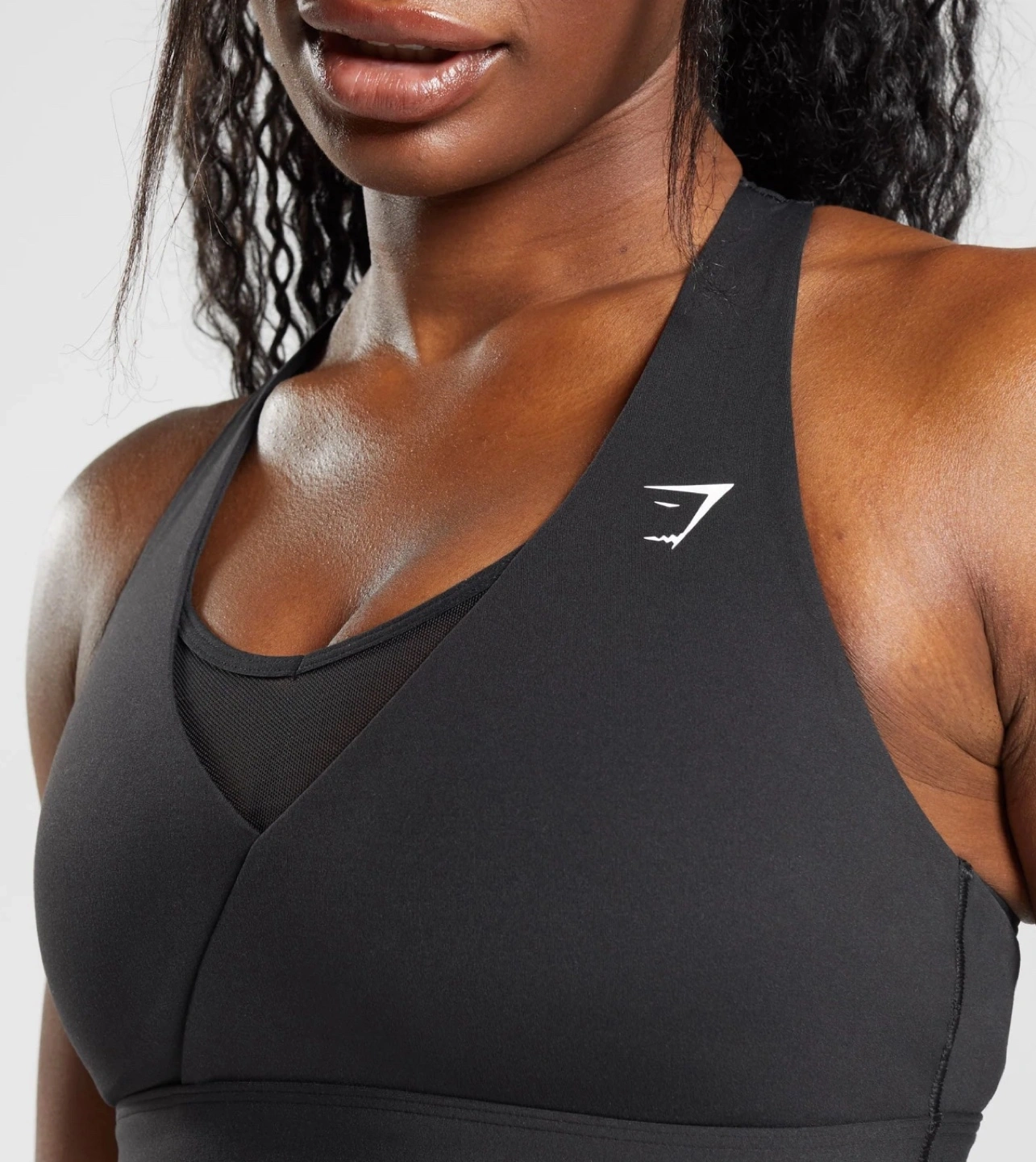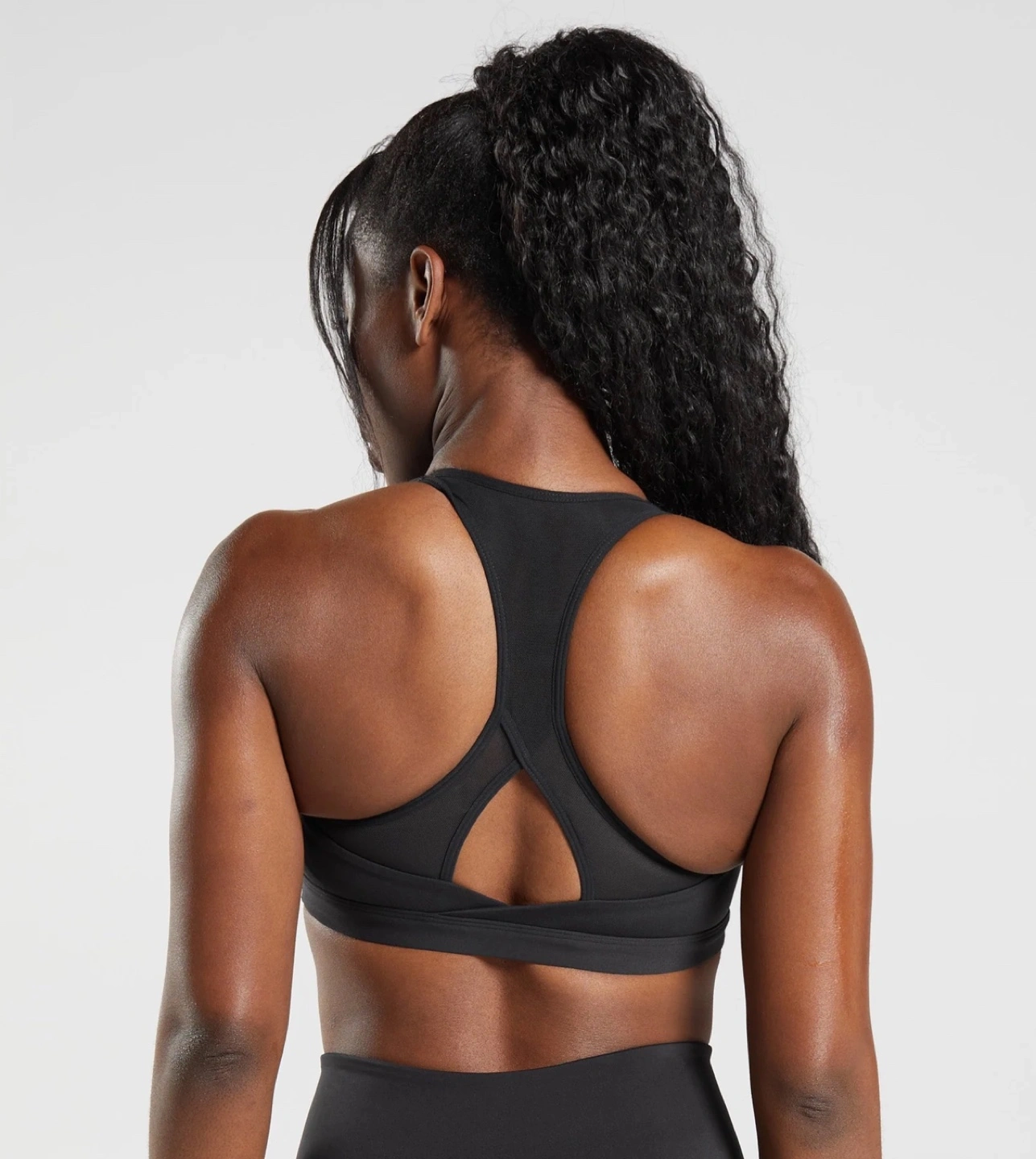 Brand new with tags. Black sports bra. Racerback style. Mesh detailing. 78% Polyester, 22% Elastane.