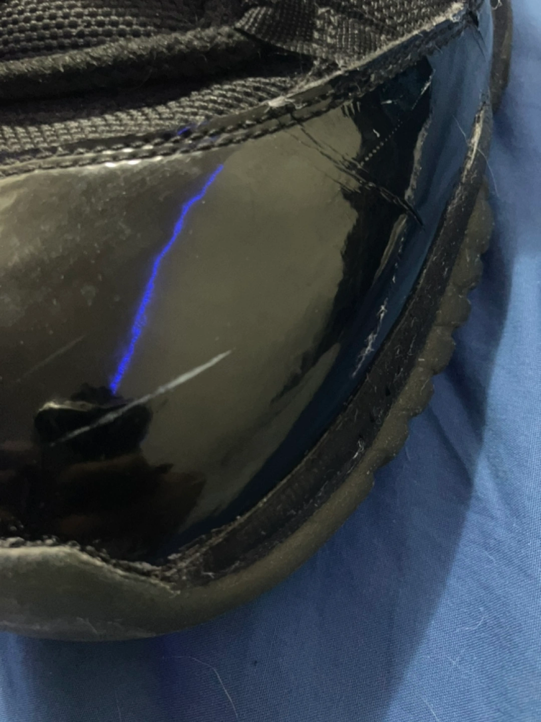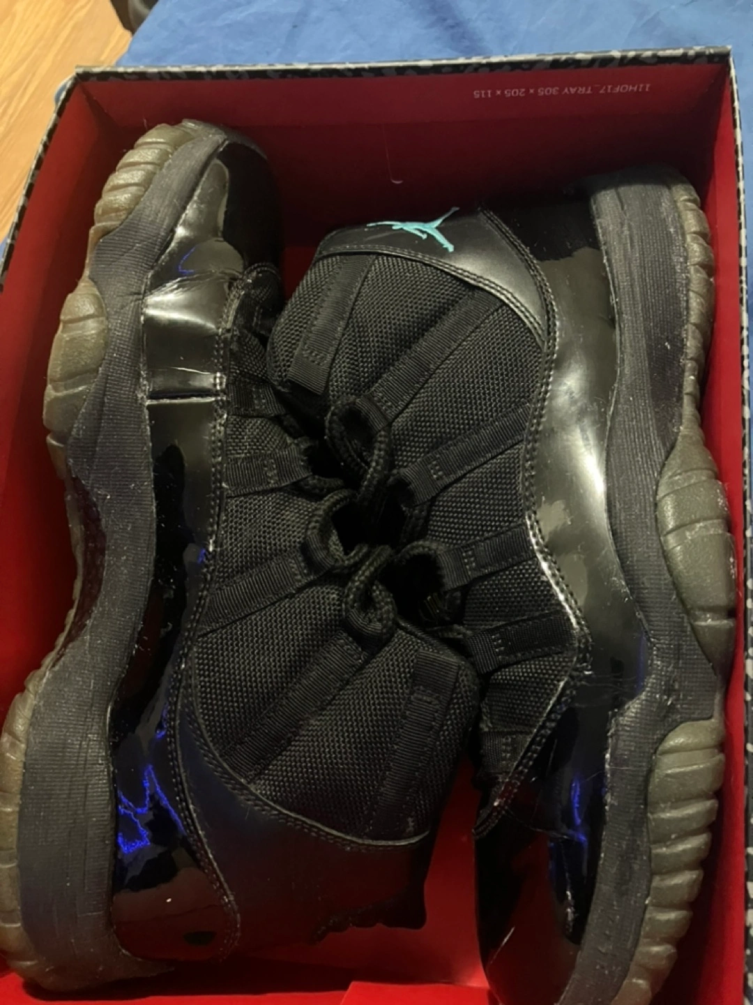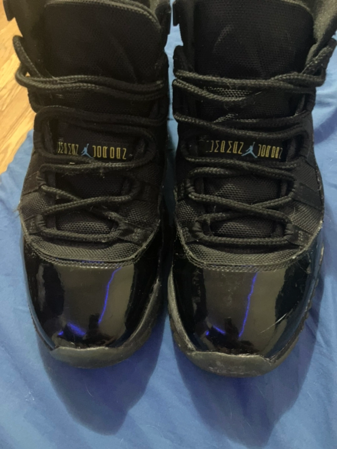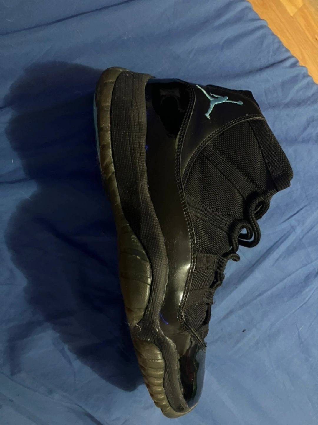 Men's Air Jordan 11 Retro sneakers. Black patent leather Size 10 Pre-owned, shows used rep box price is negotiable and do accept trades