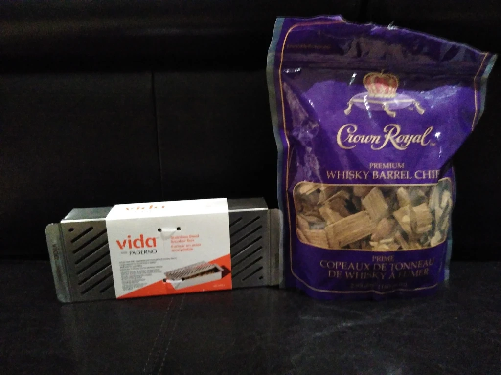 PLUS a jumbo bag of Crown Royal premium whisky barrel chips. Perfect for added flavour to your grilling. Chip bag was opened but unused.