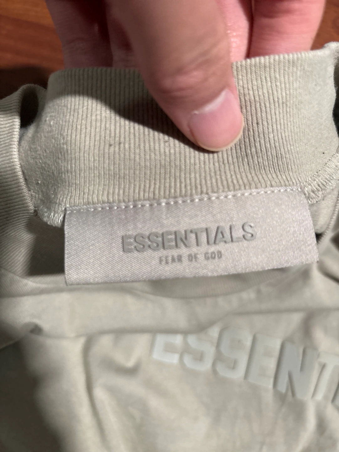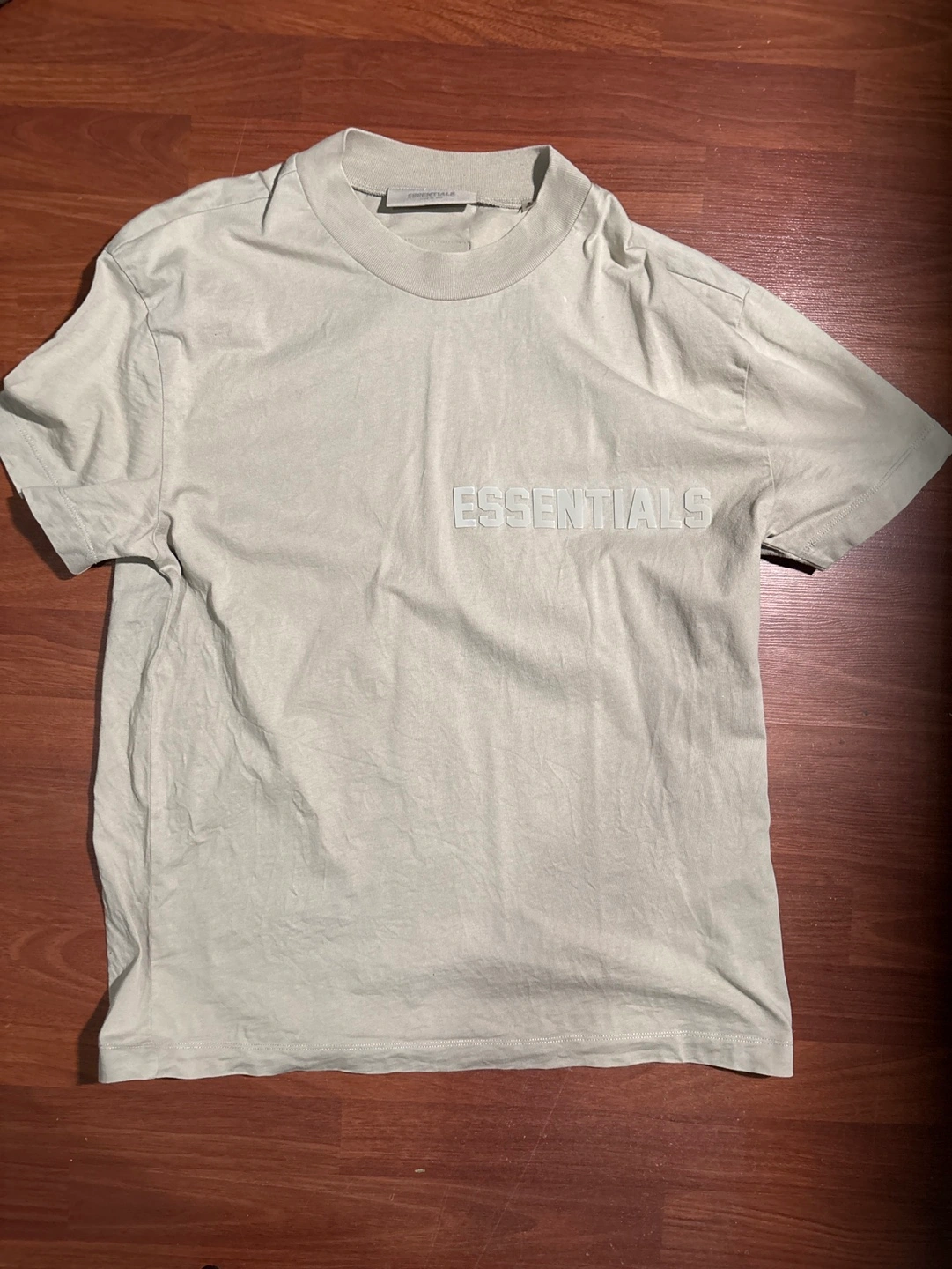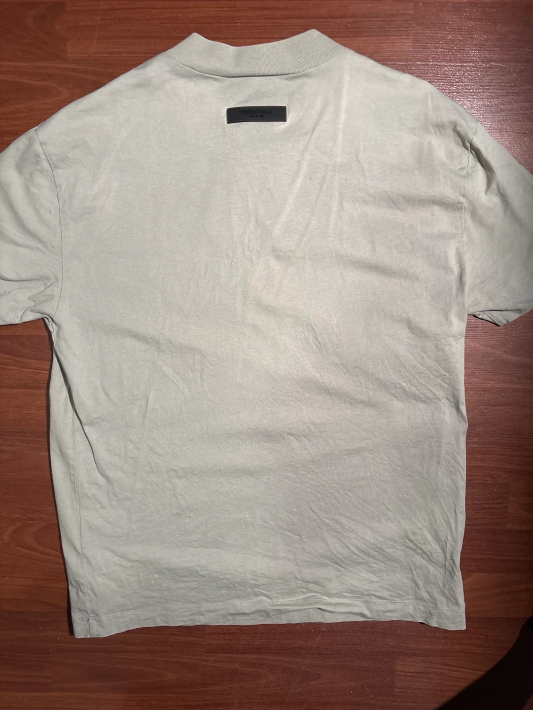 Sage green Fear of God Essentials graphic tee. Size small. Made in Vietnam. Feel free to msg me for the price or questions. I am happy to communicate!