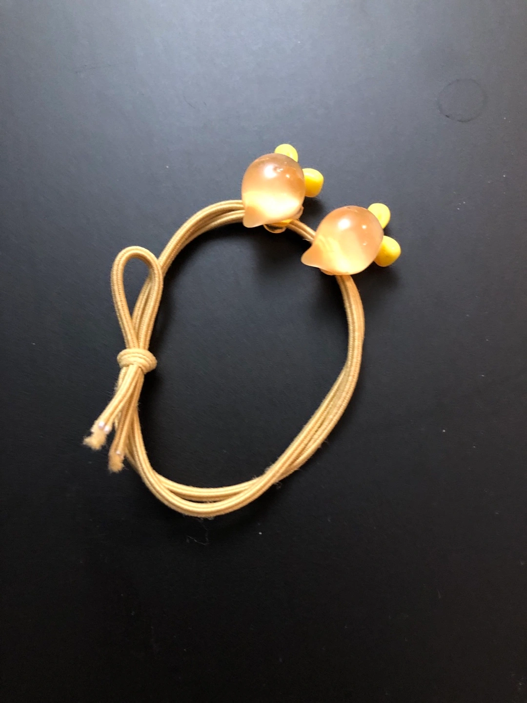 Adorable hair ties featuring small bunny charms. Beige elastic. Perfect for little girls.