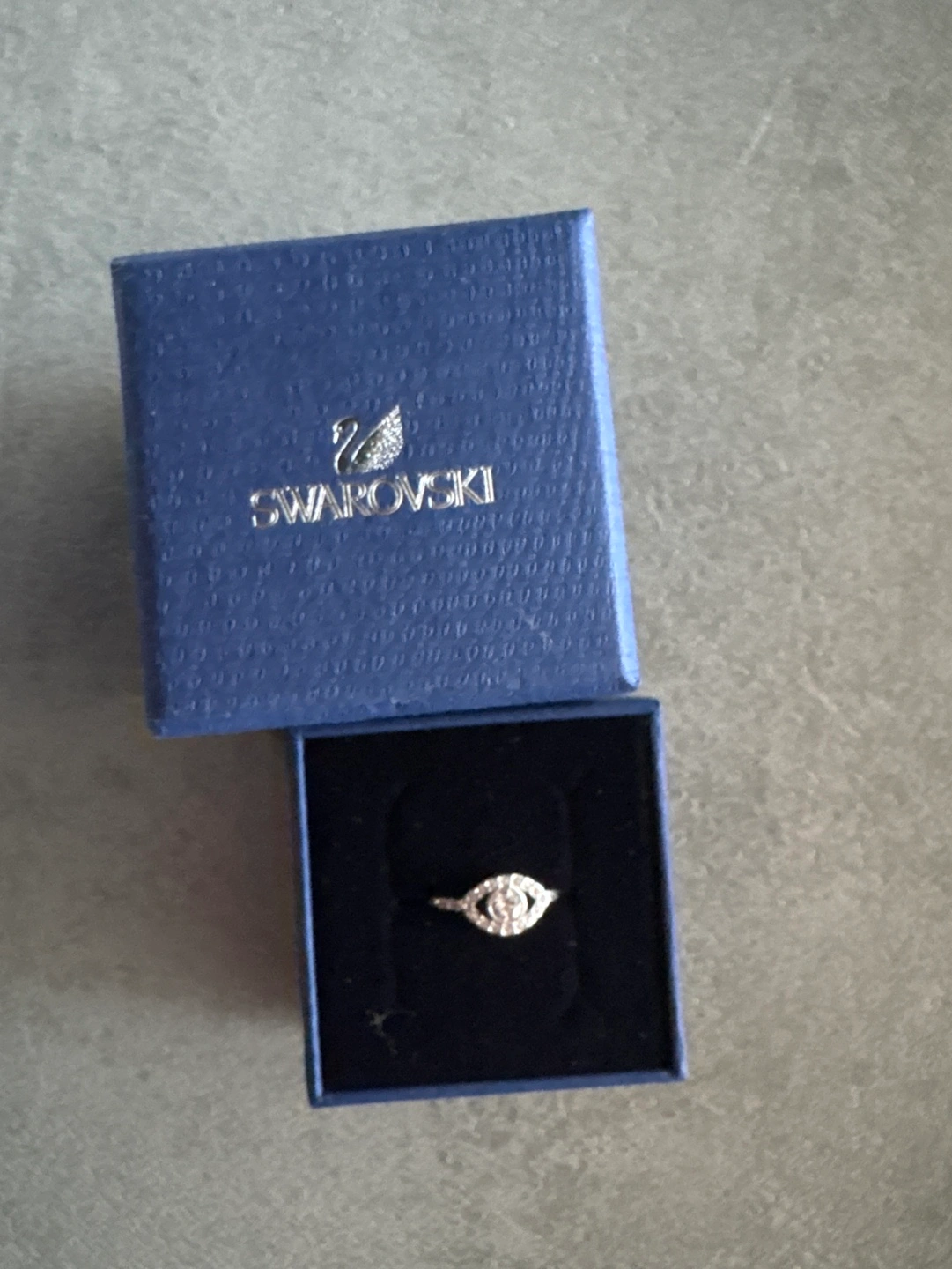142Beautiful Swarovski ring. Clear crystals. Silver tone metal. Comes in original box.