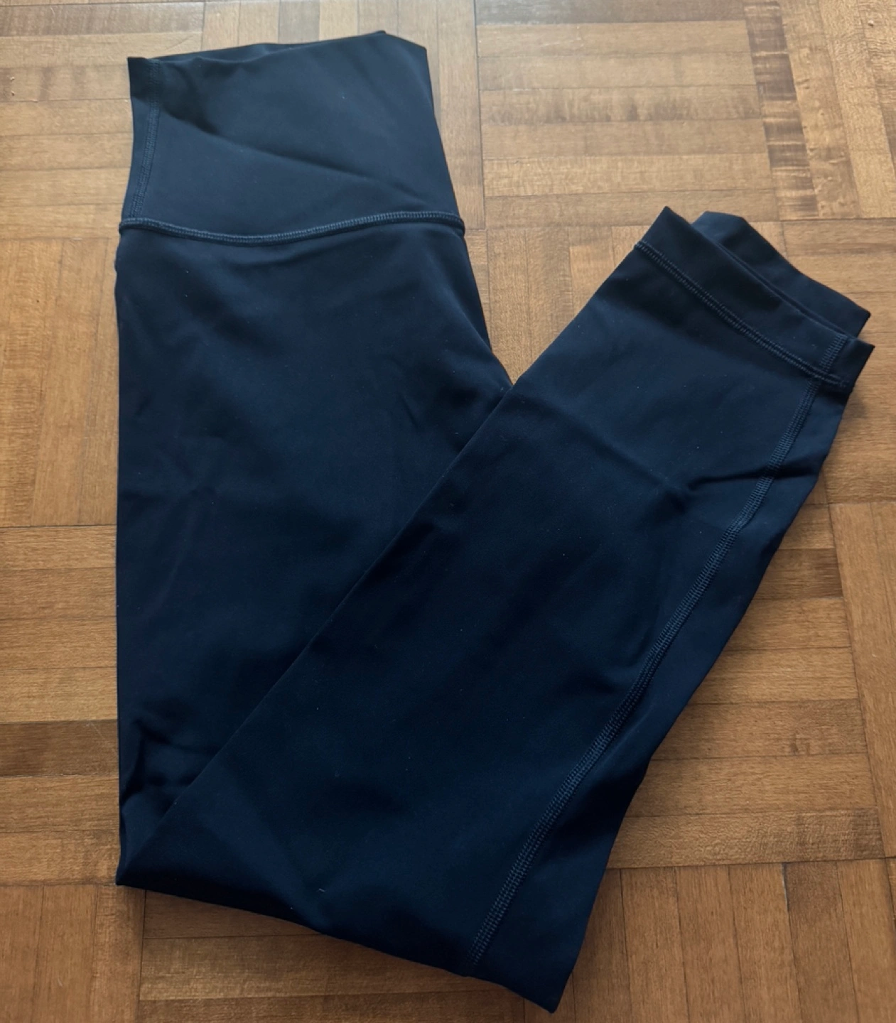 Lululemon Navy Blue leggings. Size 8. High-waisted. Made with the older fabric pre 2021, 65% nylon, 31% Lycra elastane.