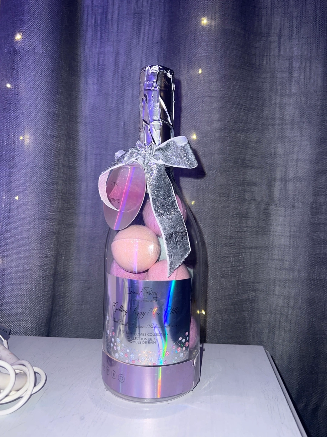 Bath bomb gift set. Champagne bottle shaped container. Twelve bath bombs, perfect for a gift or just pampering yourself π
