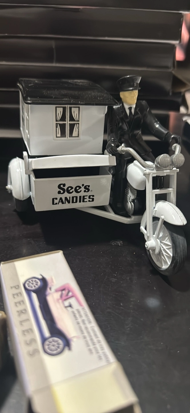 15Collectible die-cast model car. Features See's Candies branding. Part of a larger set. Includes removable top. Cash pick up only