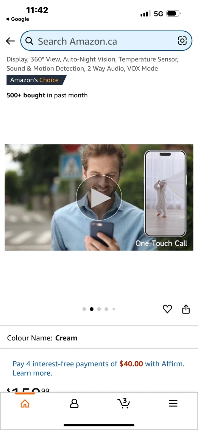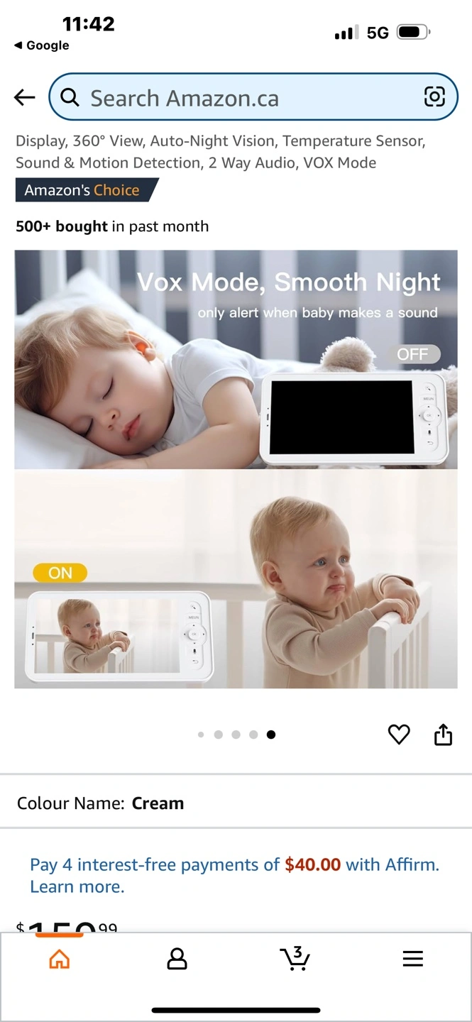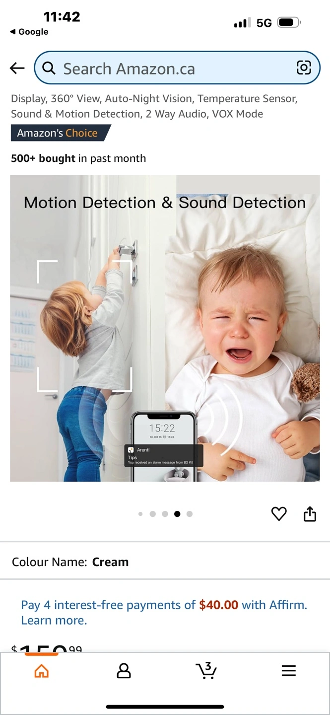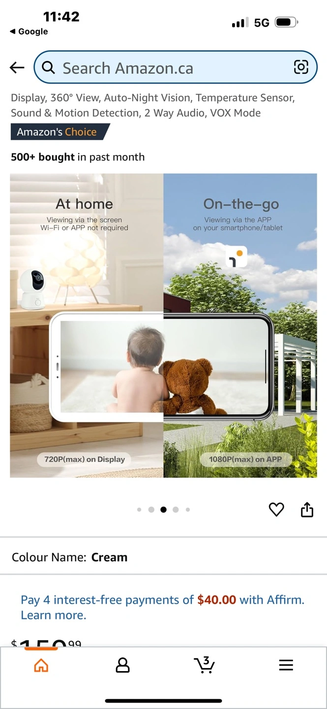 15New, unopened Arenti Alnannay B2 baby monitor kit. Includes 1080p camera and 5" LCD screen. Features 360° view, night vision, temperature sensor, two-way audio, and VOX mode. Cream colour. Cash pick up only