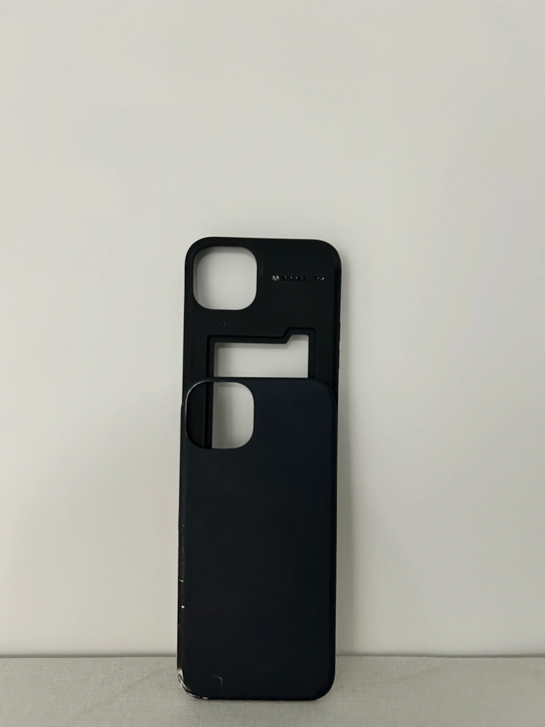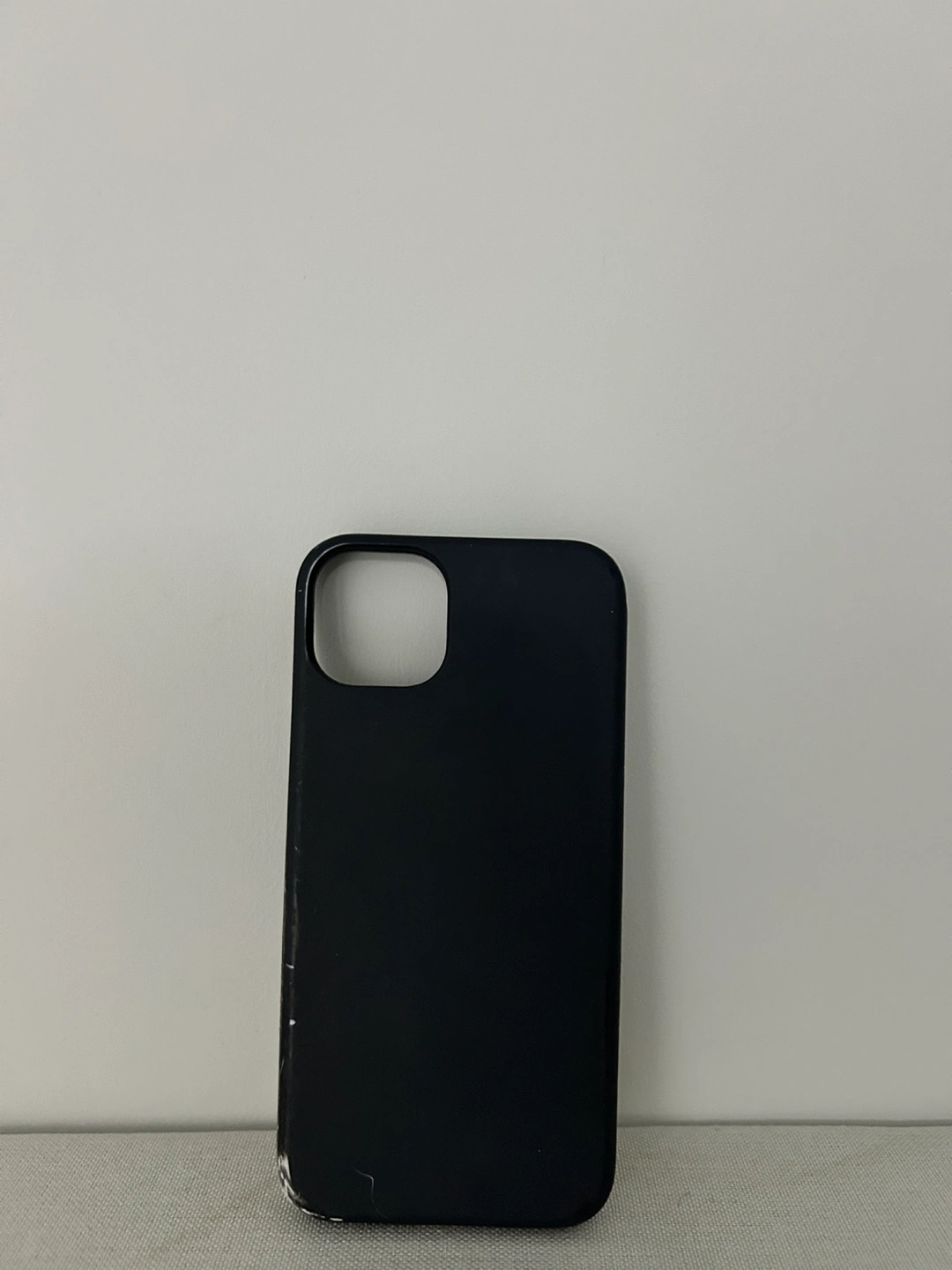 Sleek black phone case with built-in card holder. Designed for iPhone 14plus Durable material. Minimalist design. there’s some scratches at the bottom corner