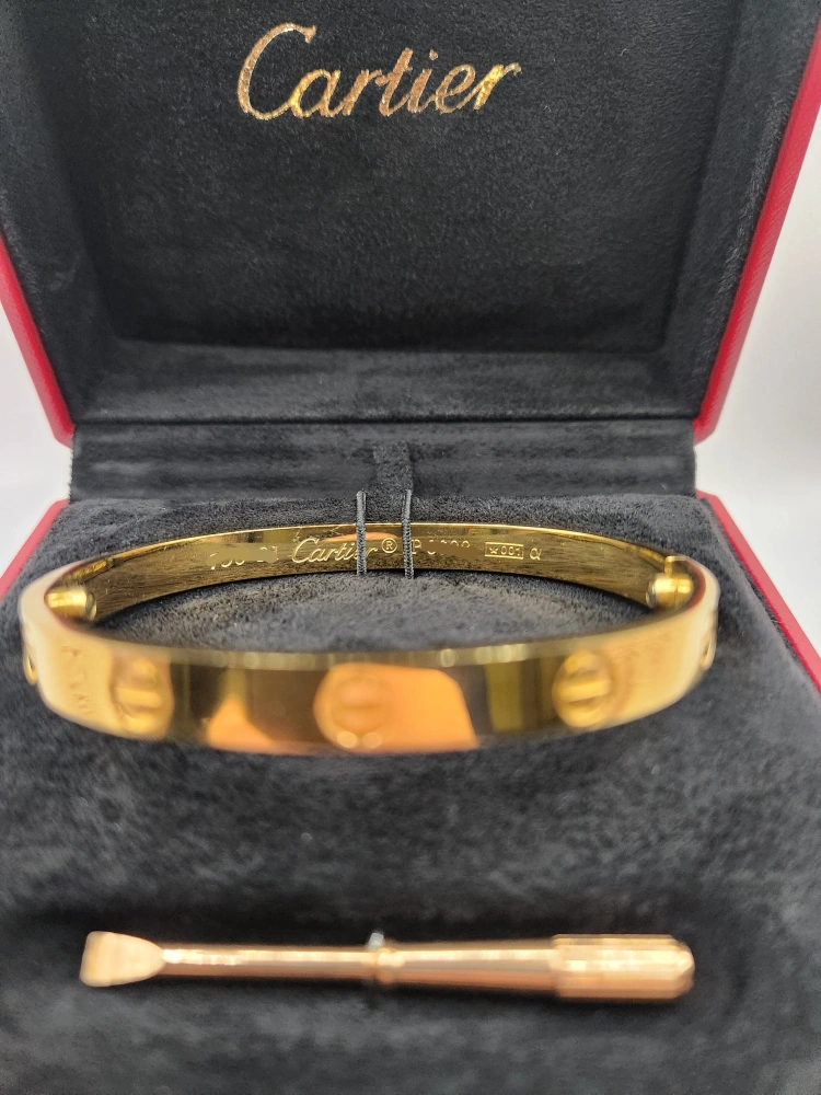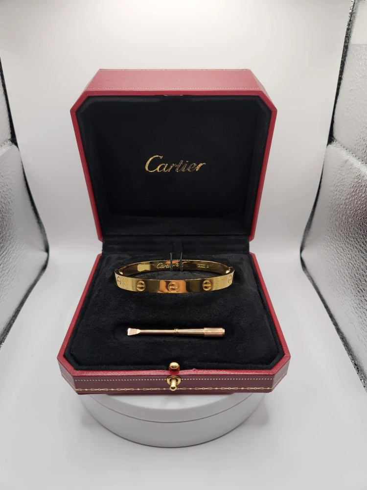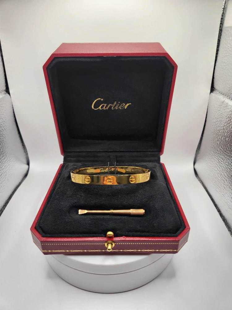 163Inauthentic Cartier Love bracelet with screwdriver. Comes with both boxes and shopping bag. Slight wear.