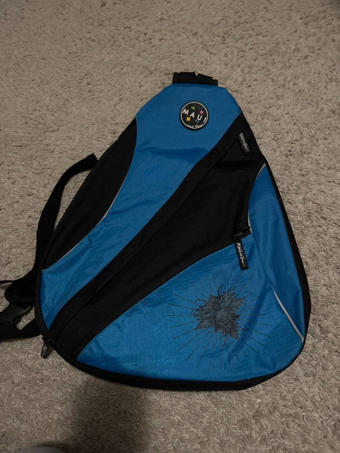 New w/o tags. Blue and black sling backpack. Adjustable strap. Multiple compartments. Features Maui and Sons logo. Unique bag reminiscent of the 90s.