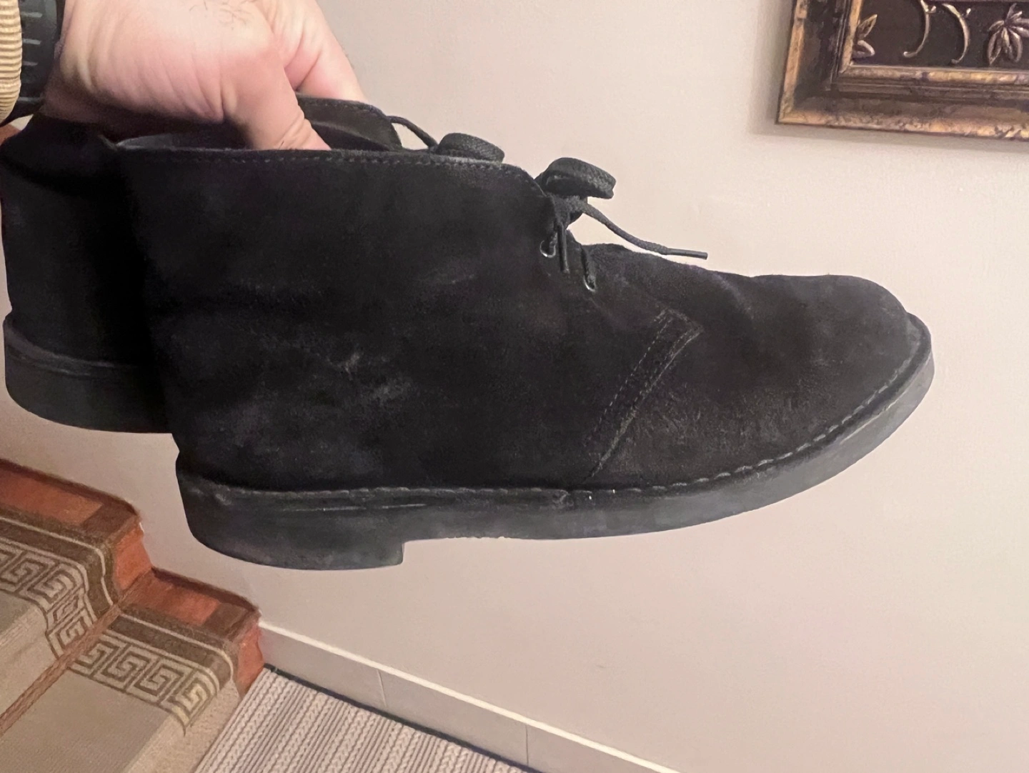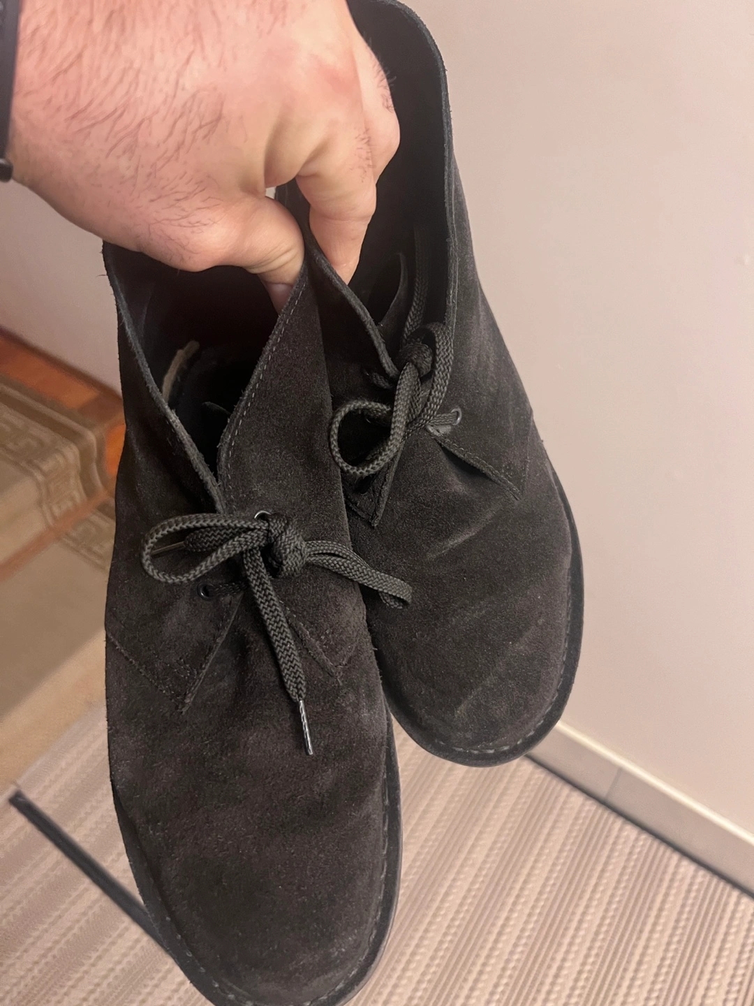 Buy & SellMen's Clarks Desert Boots - Black Suede - Size 9Men's Clarks Desert Boots - Black Suede - Size 9$35Black suede Clarks Desert Boots. Size 9W US men's. Pre-owned,ConditionGoodSize9 BrandClarksWHERE TO MEETCheck LocationView MapSELLERMasoodEdmonds351 review0 chats·0 favorites·12 viewsSEND CHAT TO SELLERHi Masood! I’m interested in your listing.Hi Masood! I’m interested in your listing.Get the Karrot app to chatSign In to chat