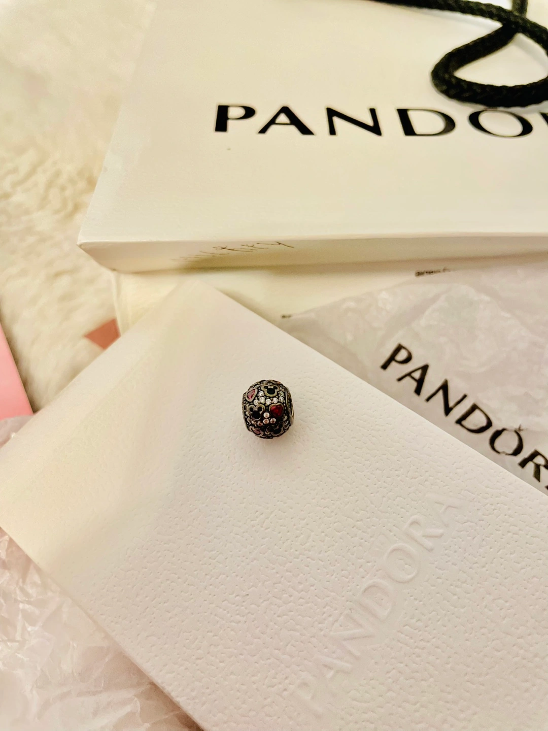 28Beautiful Pandora x Disney charm. Features red and blue hearts. Black silver colour. Comes in original Pandora packaging. It’s always in the box never use.