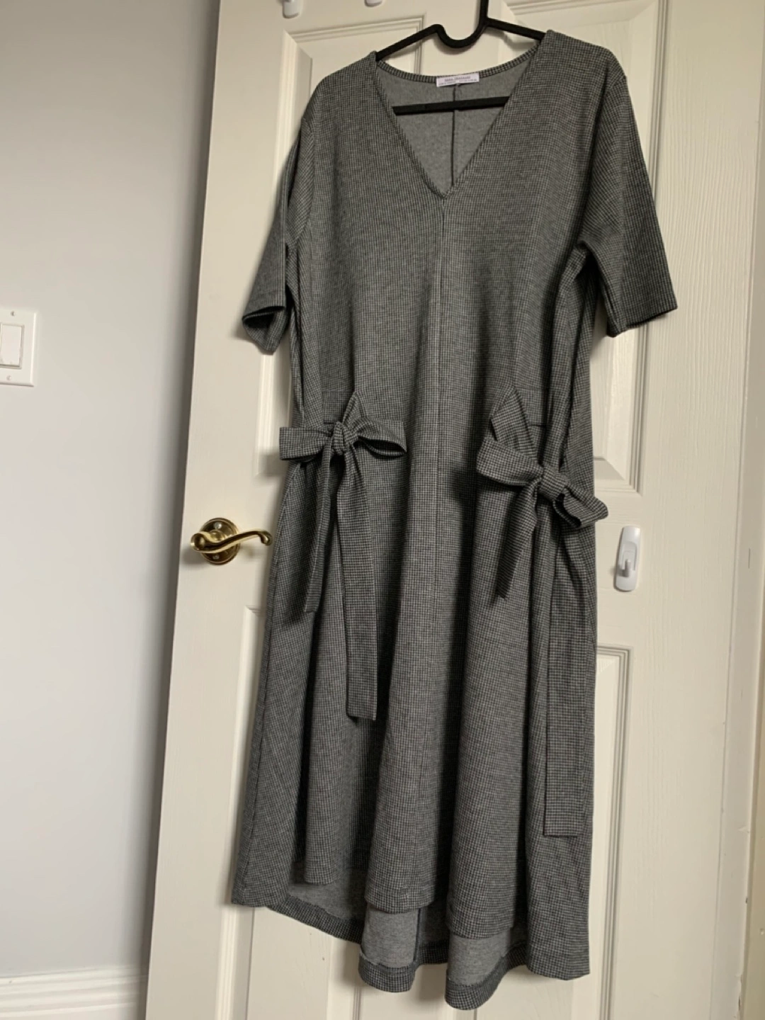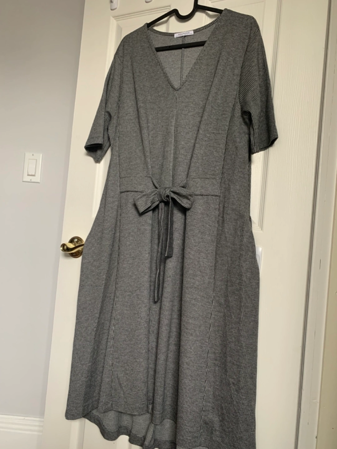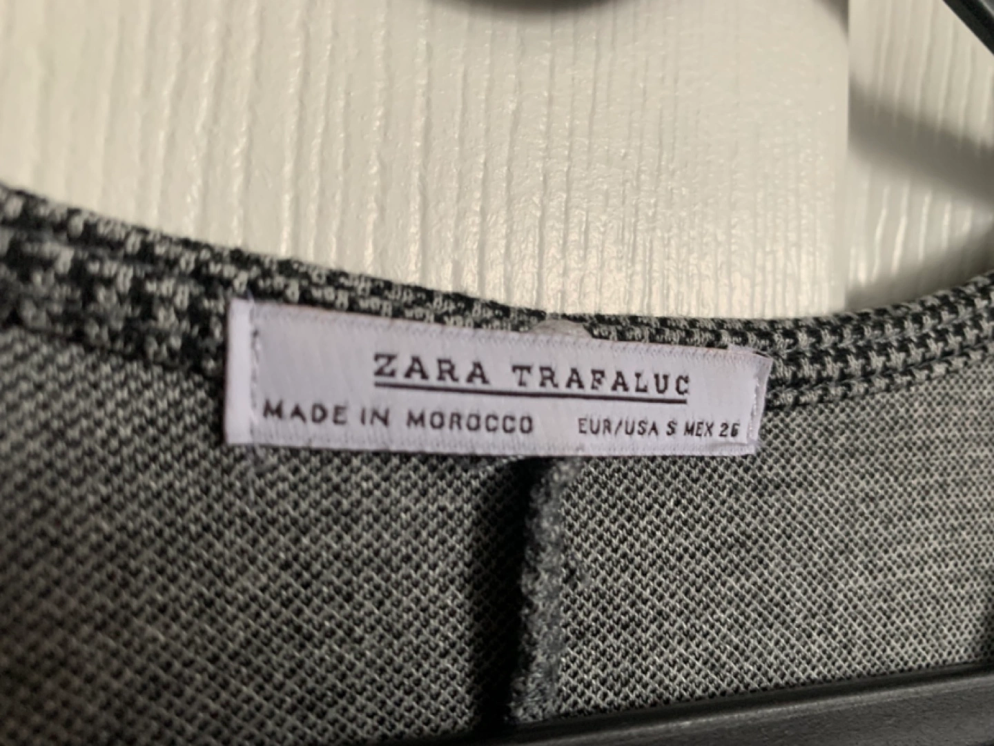 ZARA Trafaluc Dress – Size S – Like New • Elegant and versatile gray dress with a subtle checkered pattern • Features adjustable side ties that can be styled in multiple ways • Soft, thick, and high-quality fabric: 53% polyester, 45% viscose, 2% elastane • Made in Morocco