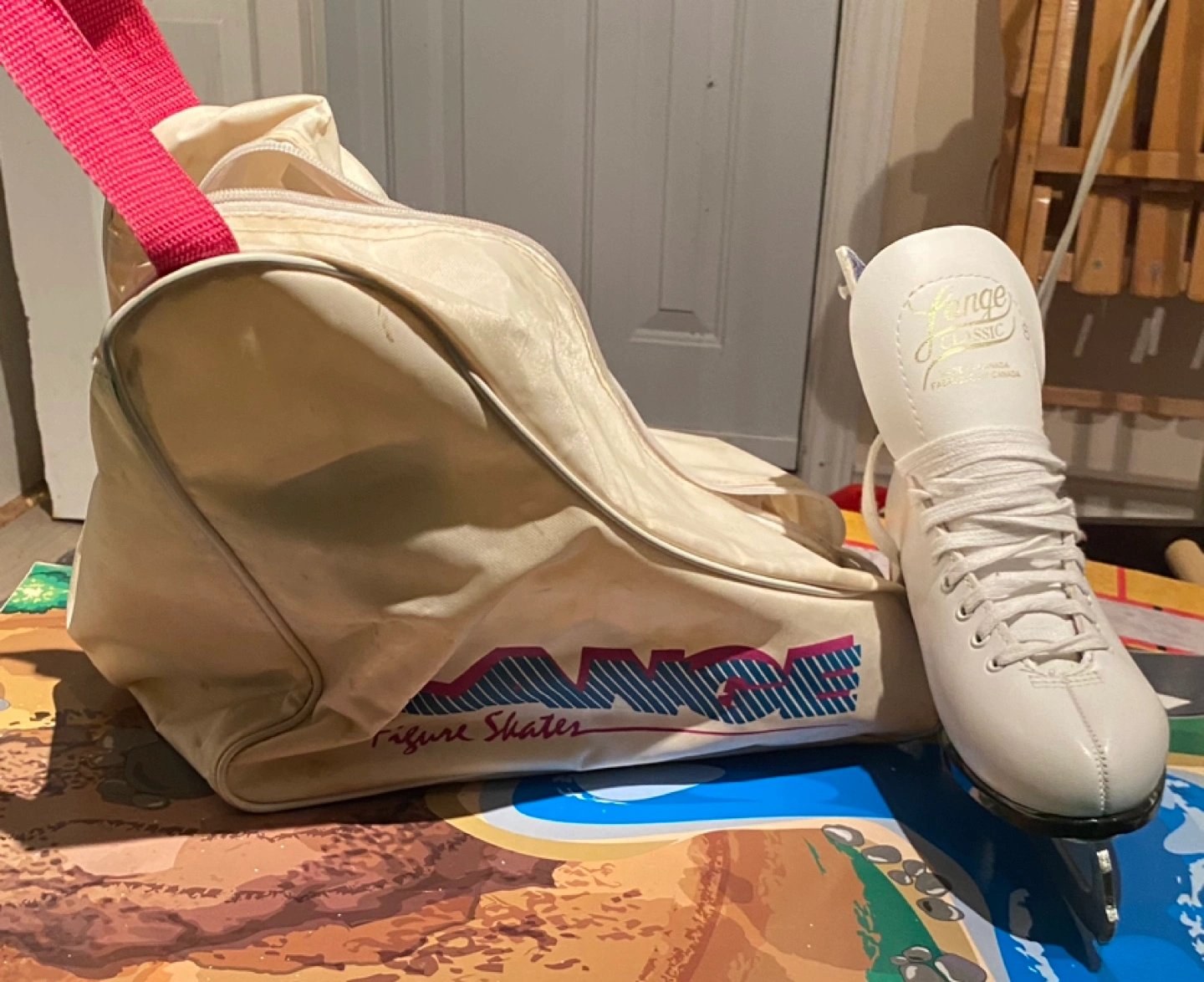 White figure skates, size 8. Made in Canada. Includes carrying bag. Excellent condition. Size fits larger than eight as I wear a nine and there is still room for socks. eBay list this at $59.95 plus $20 for shipping.
