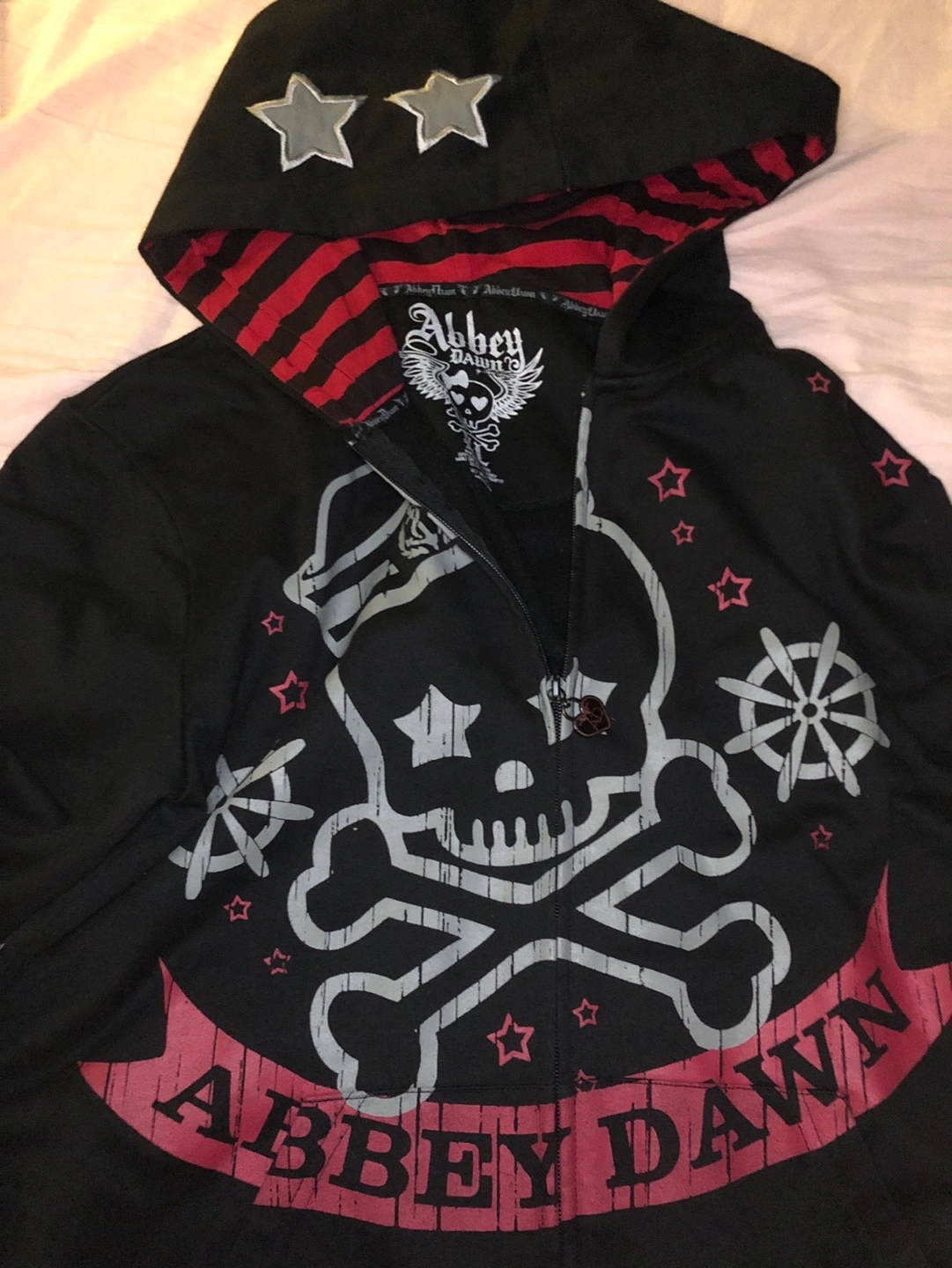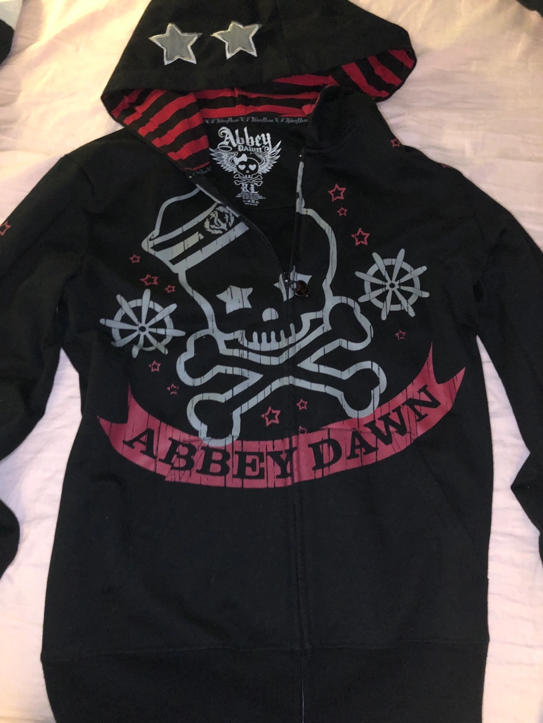 Buy & SellAbbey Dawn Black Zip-Up HoodieAbbey Dawn Black Zip-Up Hoodie$30Black zip-up hoodie. Features a skull and crossbones design with nautical theme. Maroon accents and stars. Excellent condition.SizeLargeBrandAbbey DawnWHERE TO MEETSafeway New Westminster StationView MapSELLERverifiedLilyUptown1369 reviews1 chats·0 favorites·25 viewsSEND CHAT TO SELLERHi Lily! I’m interested in your listing.Hi Lily! I’m interested in your listing.Get the Karrot app to chatSign In to chat