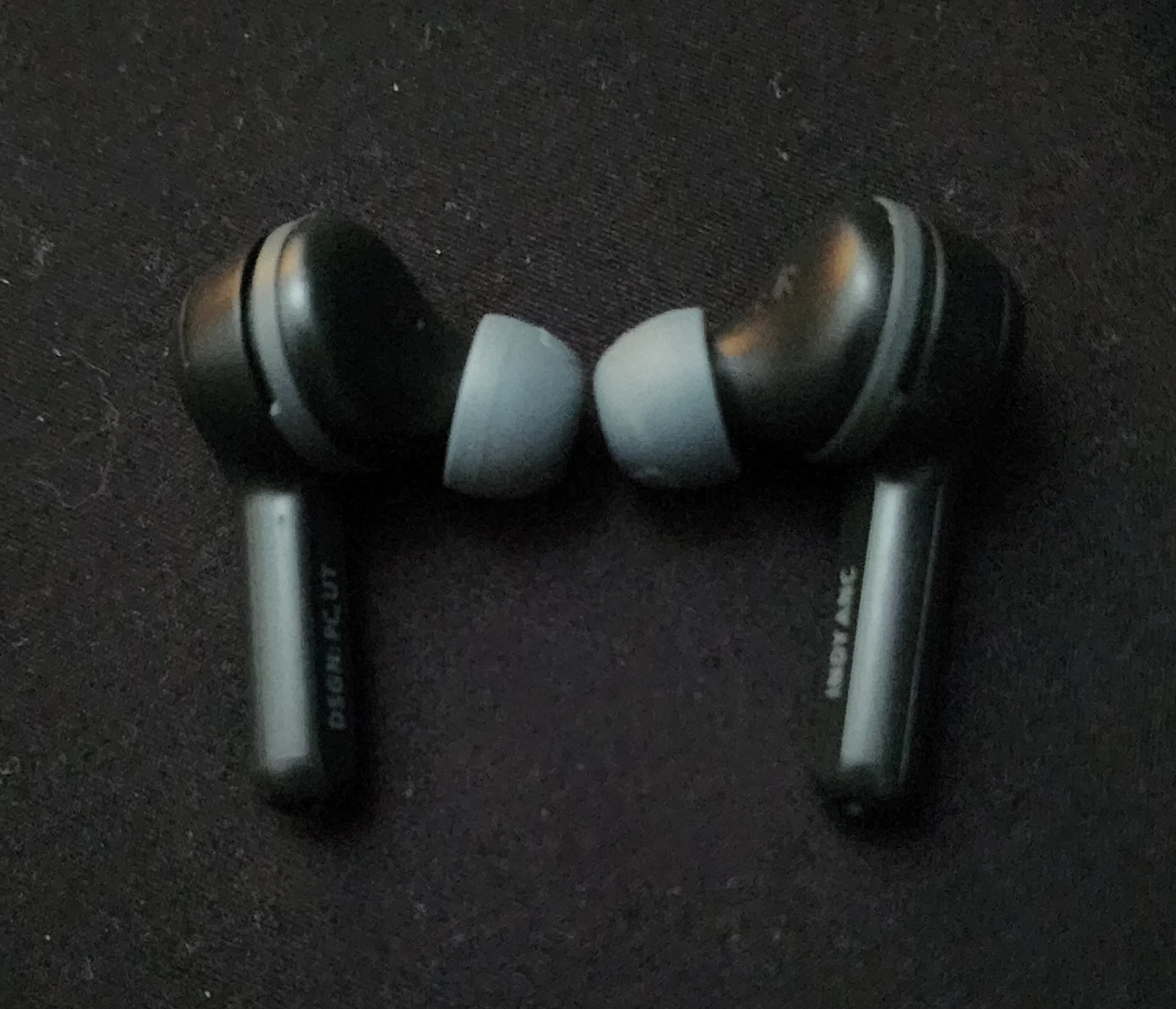 Grey true wireless earbuds. Charging case included. Great for workouts and everyday use. Enjoy excellent sound quality and a comfortable fit.