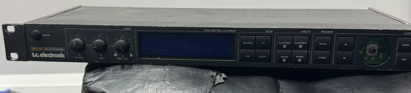 Used LC-Audio multi-effects processor. Rack mountable unit. Features digital display and various knobs and buttons for effect control. Multiple input and output jacks. Shows signs of wear.