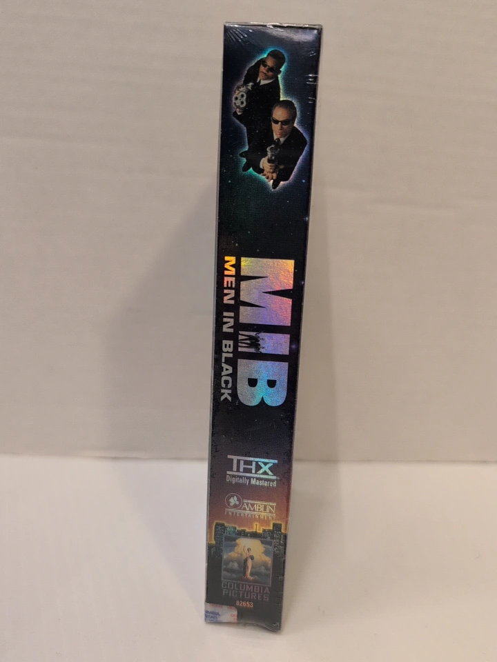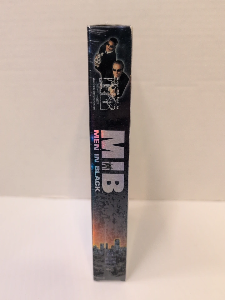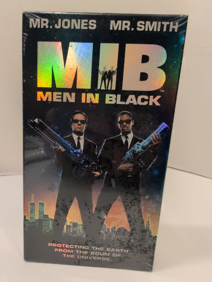MIB VHS tape. Digitally mastered. New and sealed in original packaging. Features Will Smith and Tommy Lee Jones. Includes bonus music video.