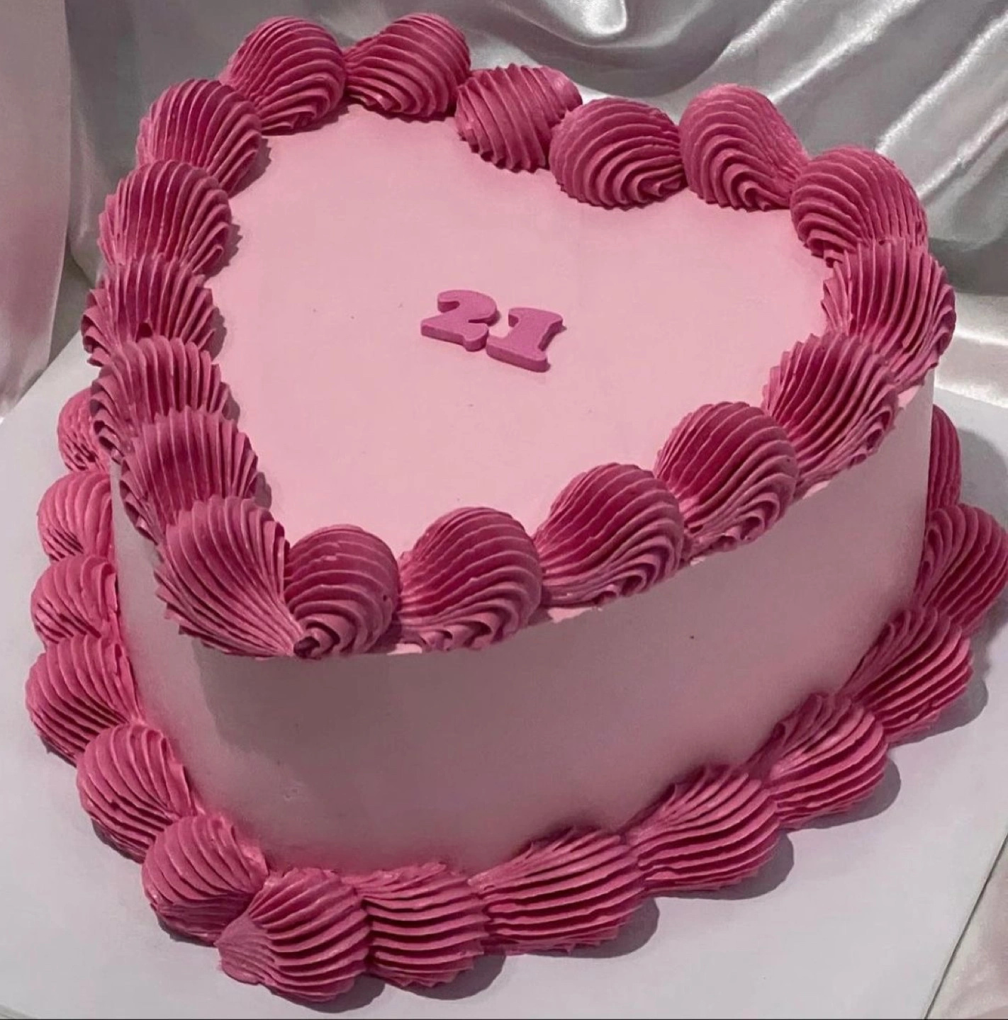 One layer vanilla cake and one layer chocolate cake with pink icing, piping and birthday age on top. Can feed around 20 people. MADE FRESH