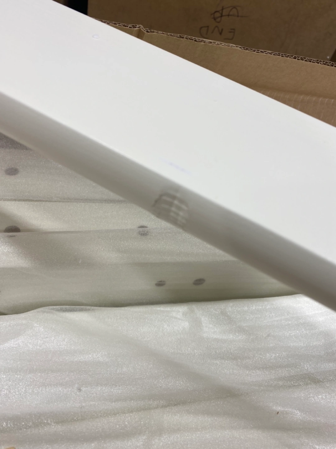 Open Box New. Small dent on one side board. Face down when assembling and not able to see. See pics.