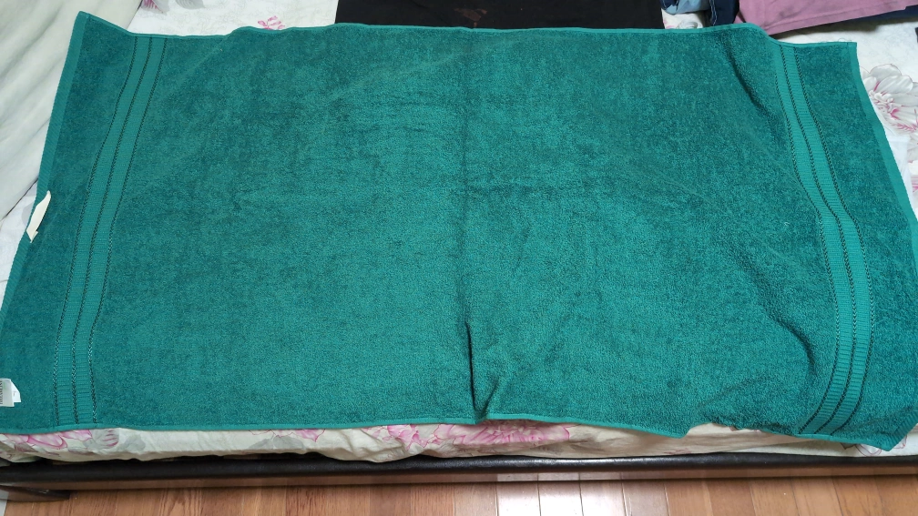 18Soft, absorbent teal bath towel. Great for everyday use. Machine washable.
