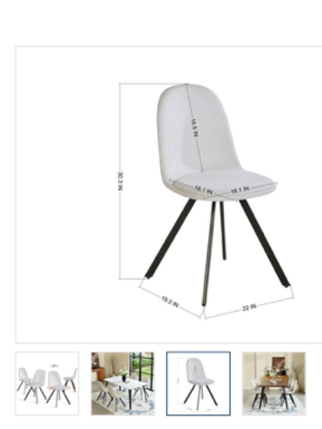 50Four off-white velvet dining chairs. Sleek black metal legs. Modern design. Comfortable seating. Excellent for a contemporary dining room.