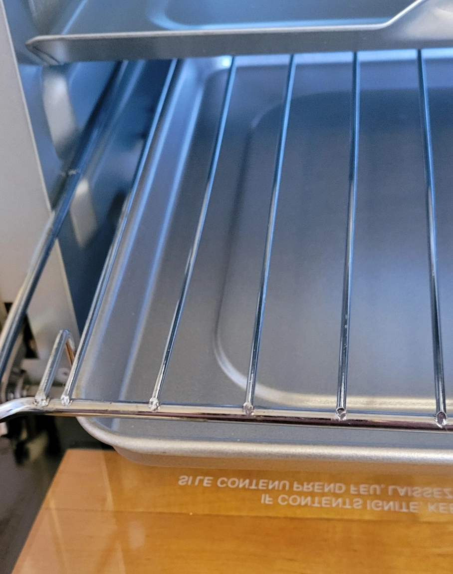 Stainless steel countertop ('Toaster') oven. Includes baking pan and rack, as well as a crumb tray beliw the rack. Multiple functions: bake, broil, toast, and rotisserie. Excellent condition.