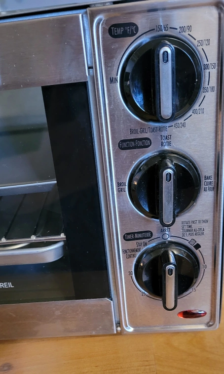 Stainless steel countertop ('Toaster') oven. Includes baking pan and rack, as well as a crumb tray beliw the rack. Multiple functions: bake, broil, toast, and rotisserie. Excellent condition.