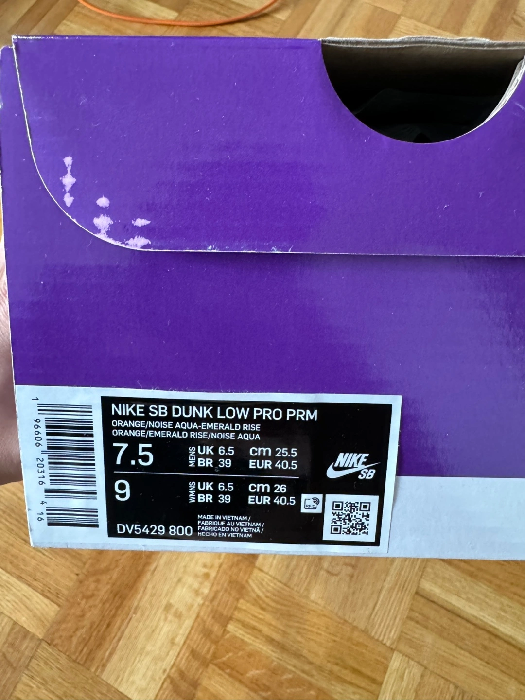 Nike SB Dunk Low Pro PRM (Limited edition). Size M7.5 W9. 100% Authentic. In original box with spare shoe race.