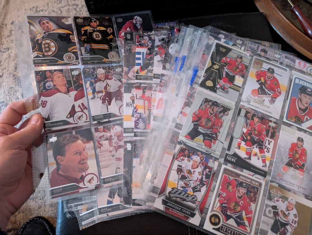 Large collection of hockey cards (24 pages). Includes players from multiple teams. Cards in sleeves and pages. Great starter collection for a young hobbyist.