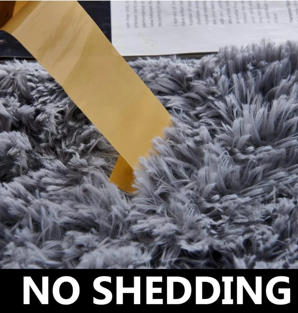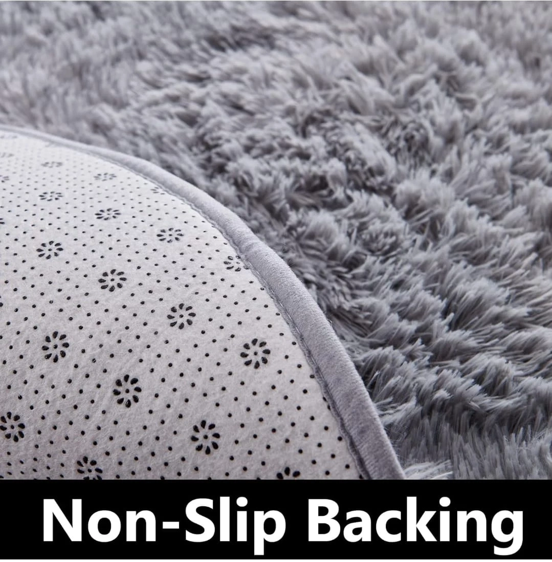 Fluffy Grey Round Rug - 1.7 inches Thick, Non-Slip Backing