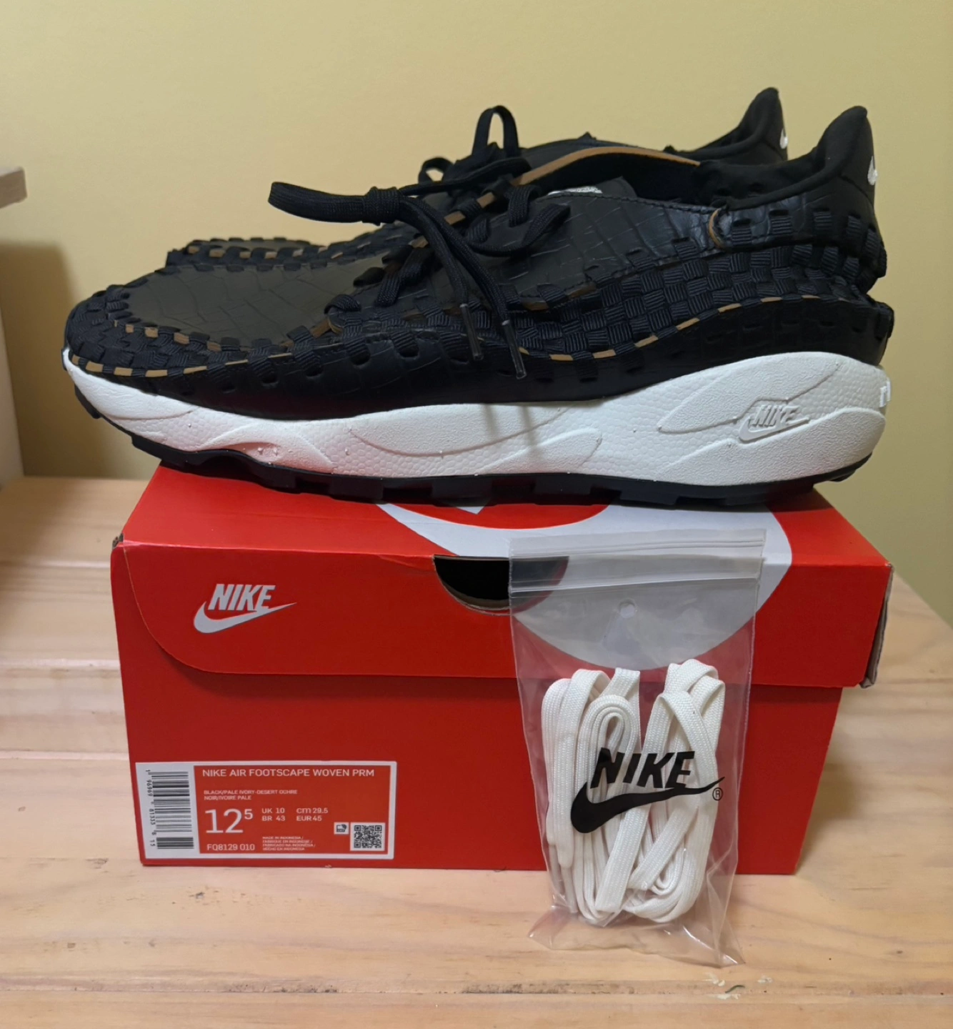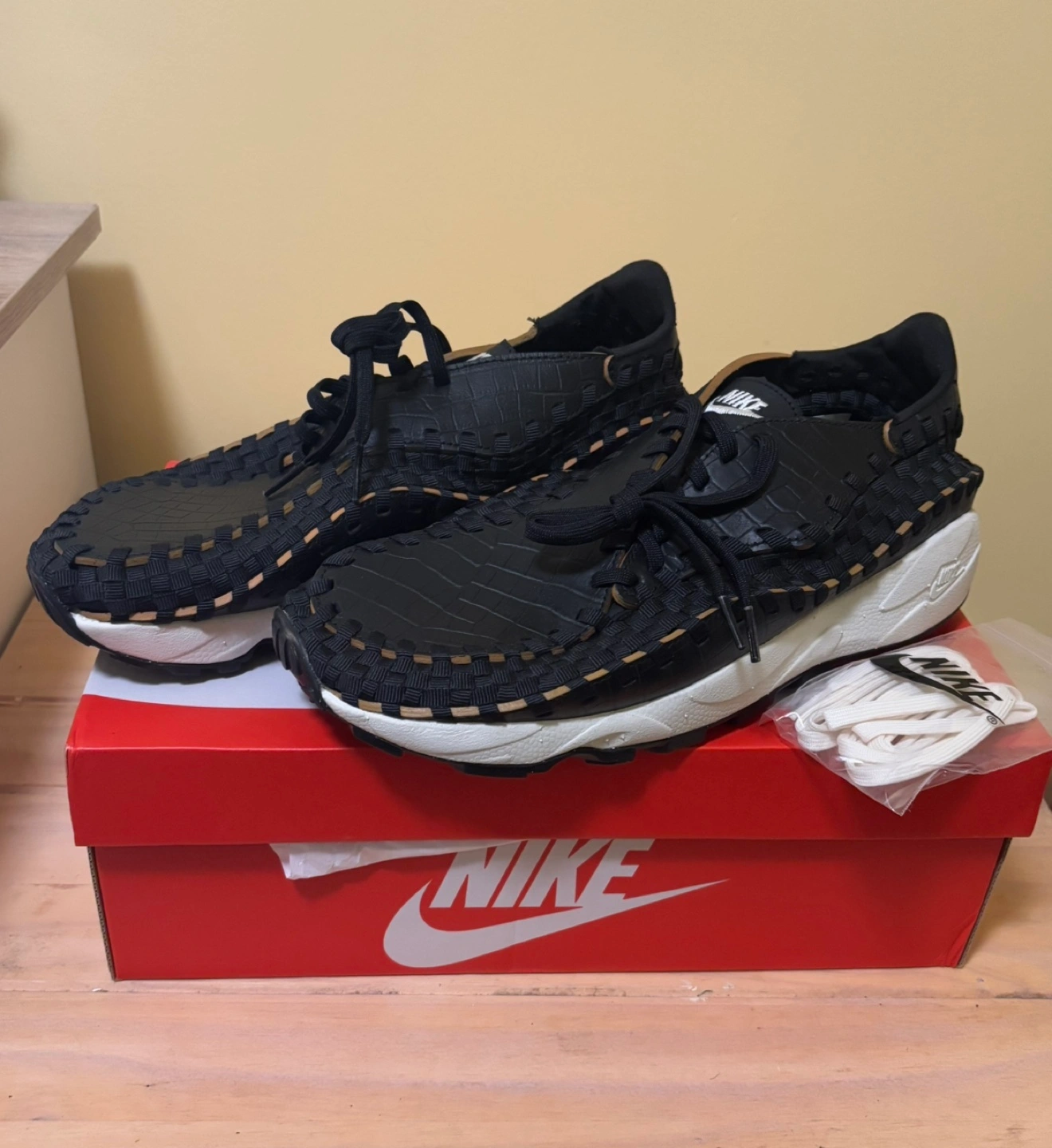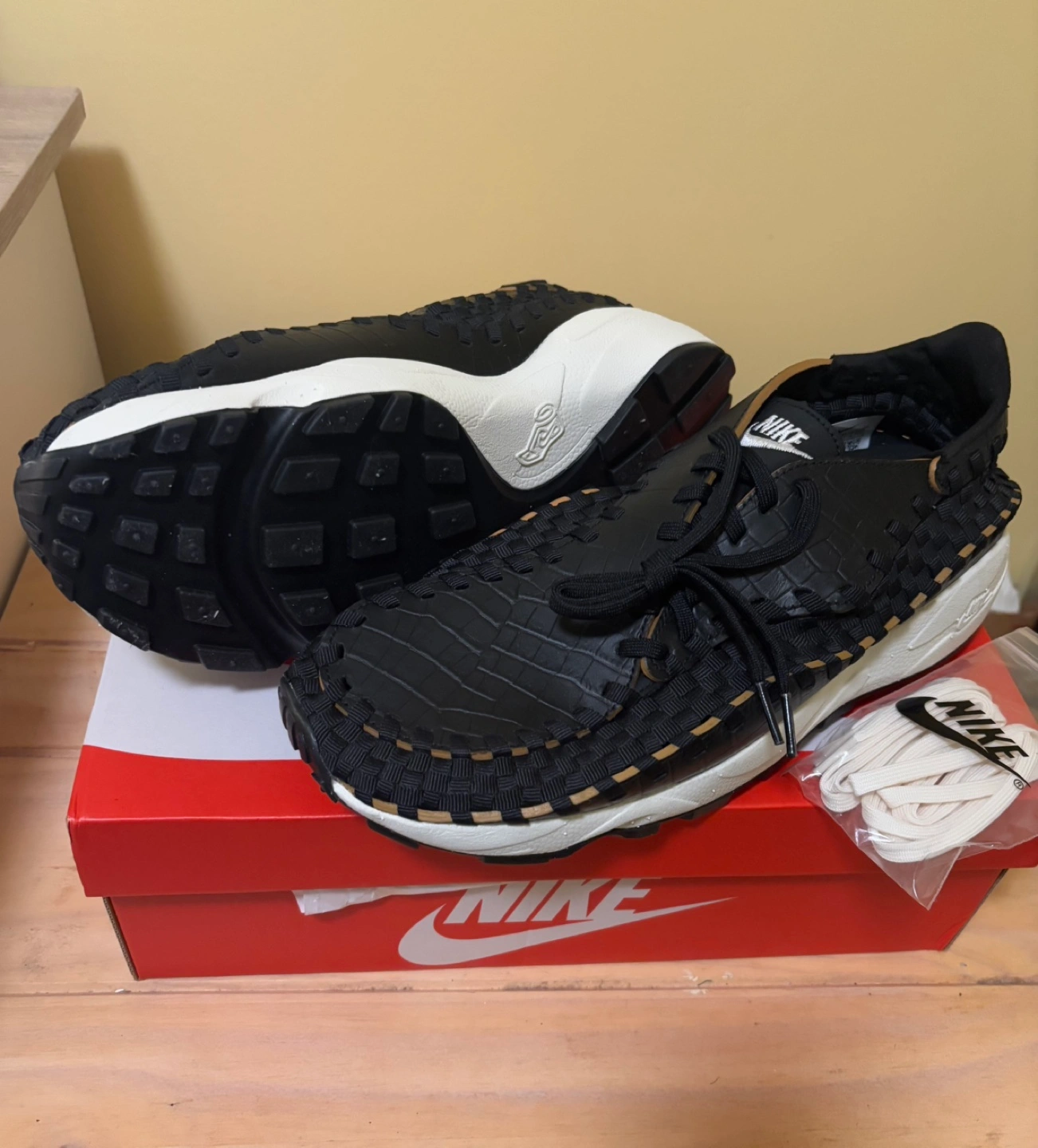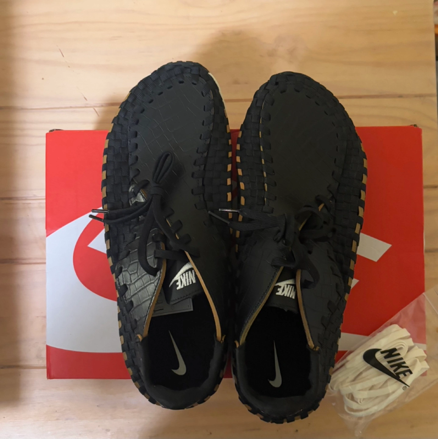 Black woven leather sneakers. Unique design, comfortable. Comes with extra laces. In original box. Brand new in box. Have not been used or worn