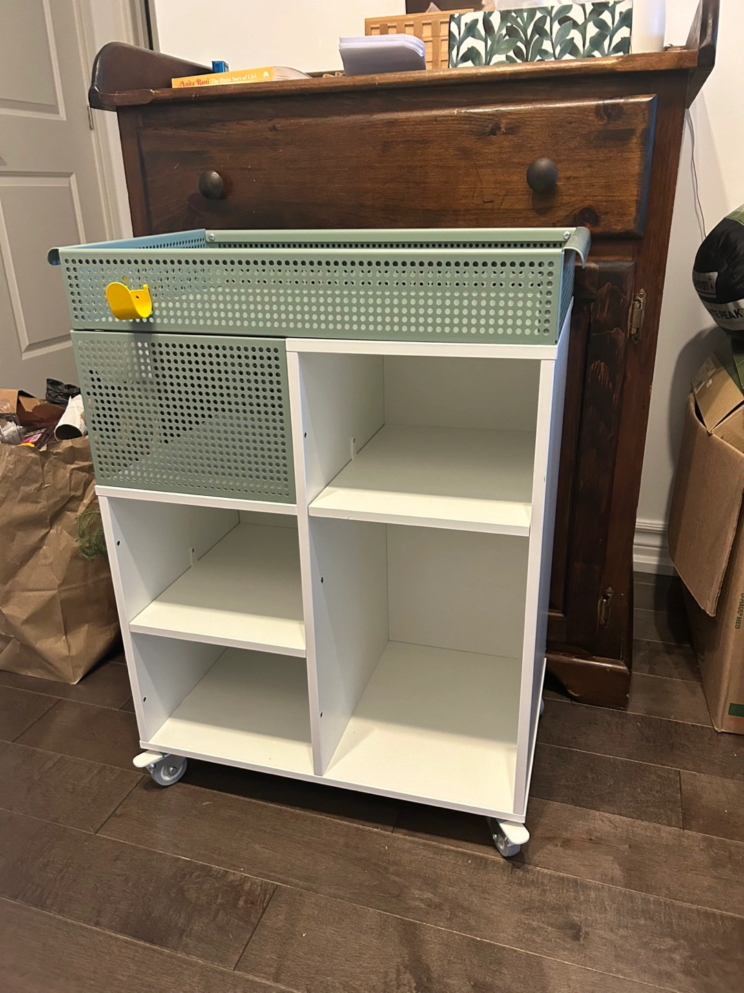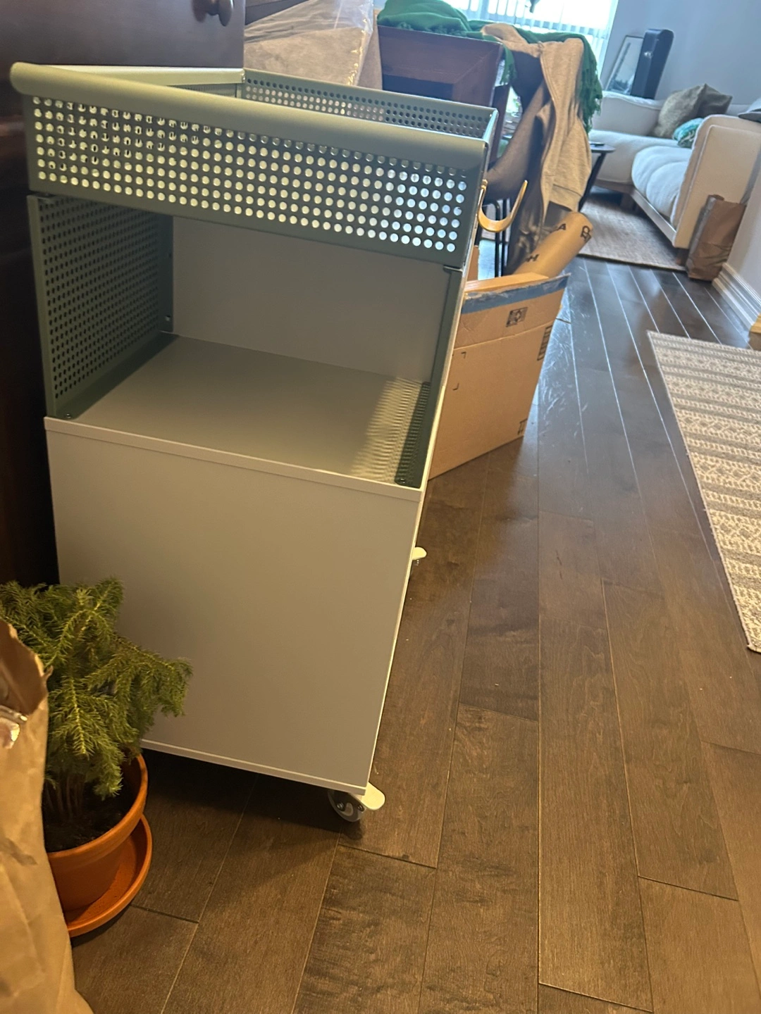 Buy & SellIKEA ÖVNING Utility Cart - White/Gray-GreenIKEA ÖVNING Utility Cart - White/Gray-Green$40White and sage green utility cart on wheels. Features shelves and a removable basket. Great for storage and organization.ConditionLike new2 chats·1 favorites·37 viewsSELLERJiyaDavisville Village343 reviewsWHERE TO MEETNear structube