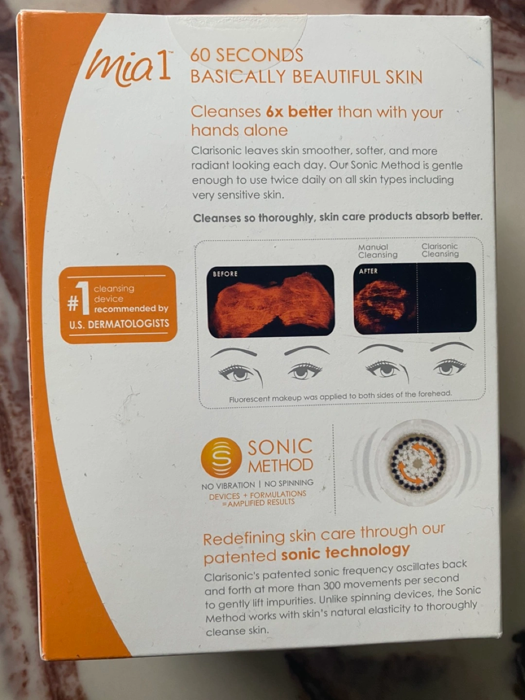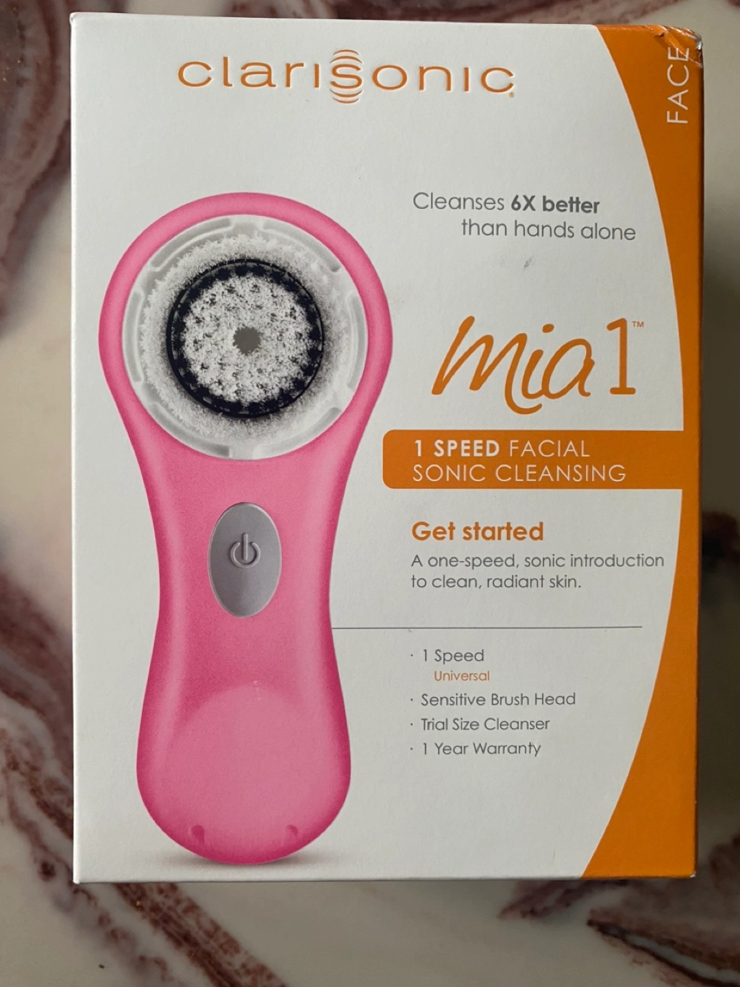 New Clarisonic Mia 1 facial cleansing device. Pink. One speed. Includes sensitive brush head and trial size cleanser. Rechargeable and waterproof. Made in the USA.