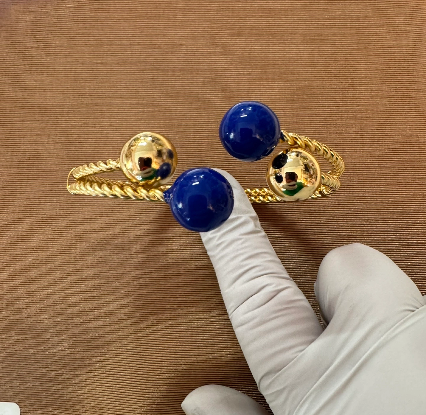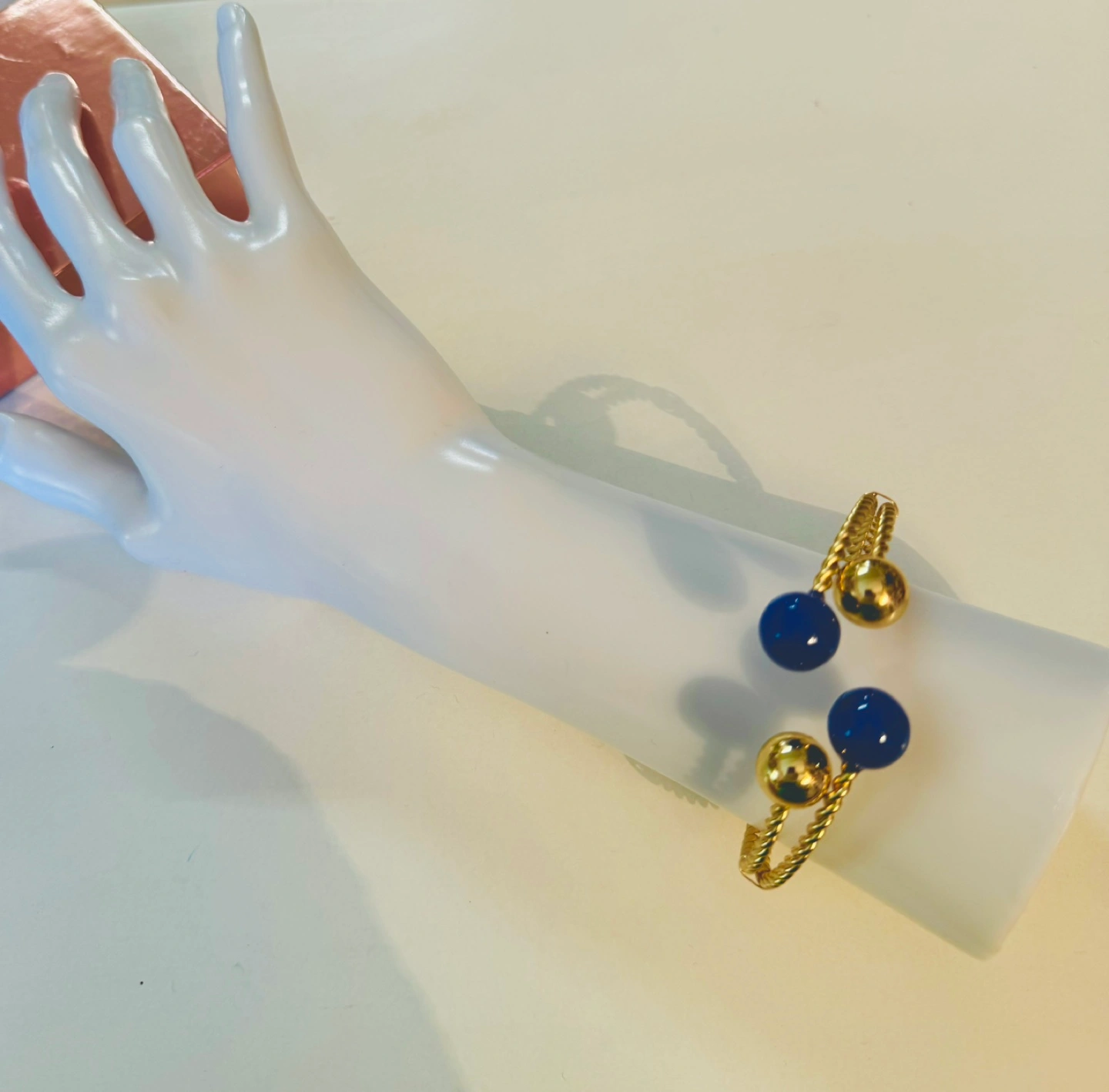 Gold Rope Cuff Bangle Bracelet w/ COBALT Blue Enameling