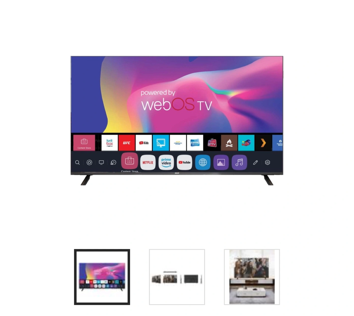 Large screen smart TV. WebOS powered. Includes access to Netflix, YouTube, Prime Video. Ultra HD and HDR10.