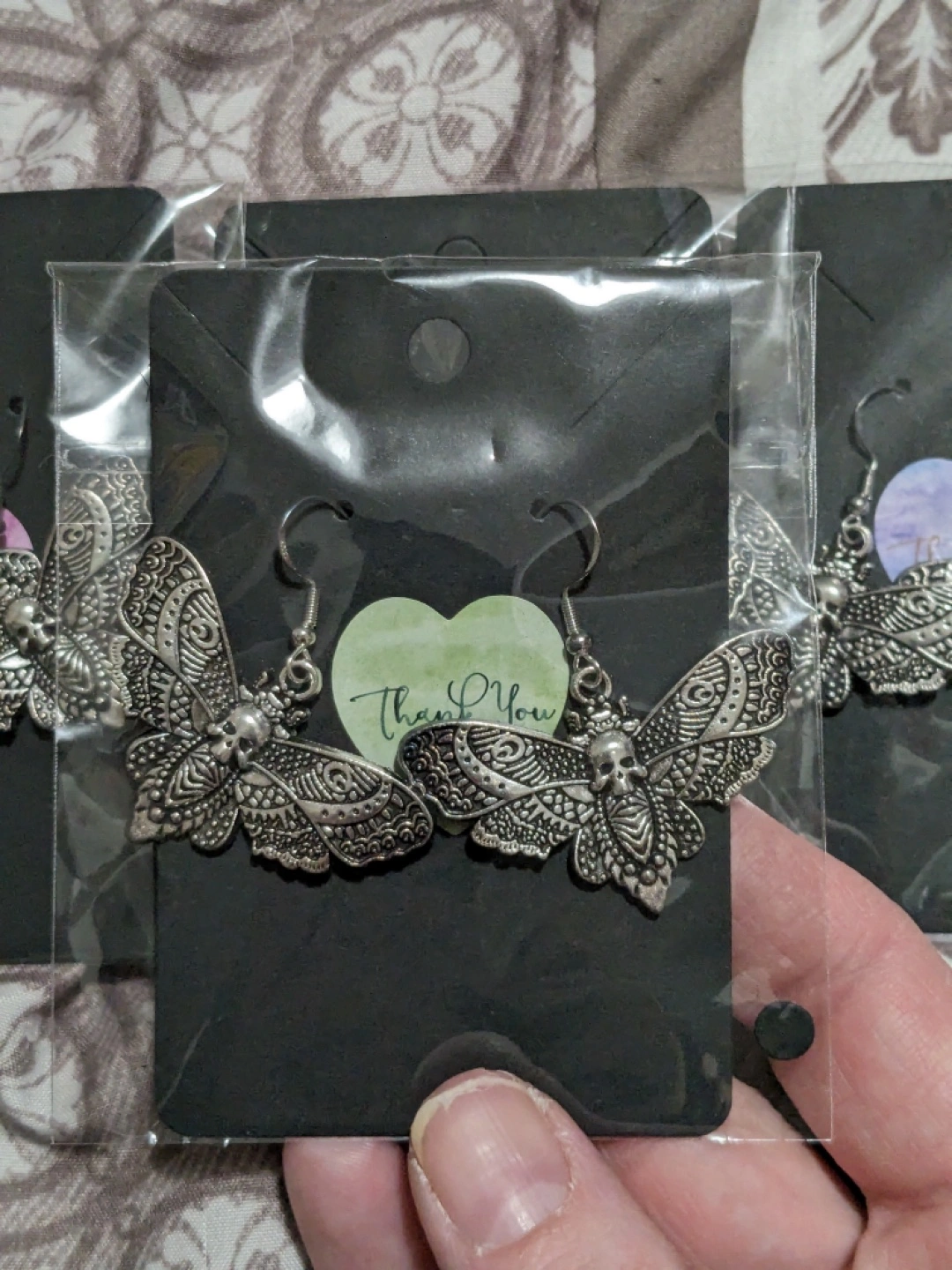 Designs include: moth skull, bat, crescent moon cat, ghost, and black cat/skeleton cat.
